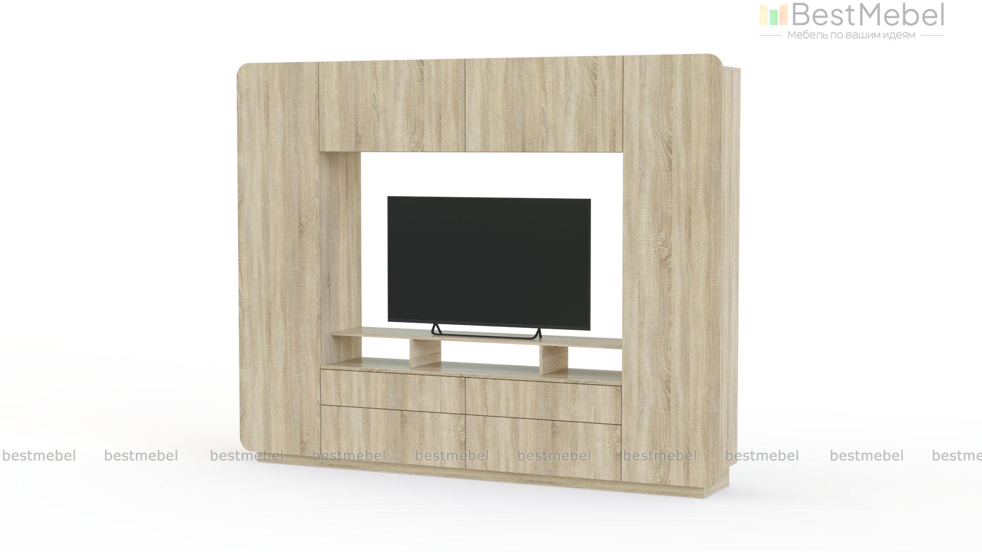 Гостиная Лайт 10 BMS оборудована просторной нишей с подставкой под ТВ, а по периметру расположены выдвижные ящики и распашные отделения. Геометричность дизайна подчеркивают нейтральная светлая палитра и отсутствие лицевой фурнитуры, чуть выступающие фасады скруглены по углам. Благодаря использованию ламинированной плиты высокого качества конструкция надежна и долговечна. Купить гостиную Лайт 10 BMS, изготовленную по индивидуальным размерам, вы сможете в нашем интернет-магазине.