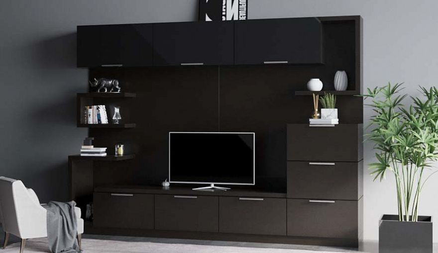 Гостиная Ульяна BMS отличается компактными размерами и минималистичным современным дизайном. Строгая композиция в сочетании темных древесных тонов и глянца поможет оформить зону ТВ, разместить бытовые мелочи, книги и декоративные предметы. Гостиная оборудована широкой низкой тумбой под аппаратуру, высокой тумбой с ящиками, открытыми и глухими полками, закрепленными на задней панели. Купить гостиную Ульяна BMS приглашаем в наш интернет-магазин, подобрав нужные параметры.