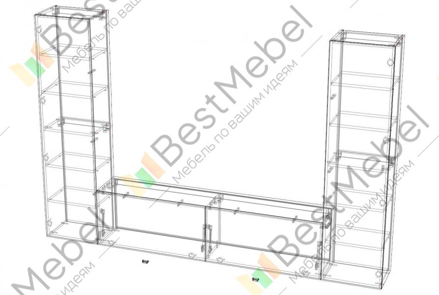 Необычное цветовое решение и современный дизайн модели VIGO IV BMS не оставят равнодушными поклонников минимализма и функциональности. Навесные модули конструкции выполнены в оригинальном сочетании темного корпуса и светлого глянца фасадов. В комплект входят удлиненная тумба под ТВ и пара узких высоких пеналов, расположить которые вы сможете по своему вкусу. Дверцы оборудованы эргономичной системой открывания PUSH-CLICK. Простая в уходе и долговечная, гостиная будет долго радовать хозяев и гостей дома.