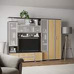 Мебельная стенка Аврелия-5 ‒стильный и компактный вариант для небольшой комнаты. Закрытый шкаф для одежды и вещей довольно вместителен. Стеклянные витрины, предусмотренные для посуды или книг, открытые полочки дополняют современный дизайн стенки. Удобная ниша под телевизор, а также нижние модули шкафчиков и ящиков ‒ все здесь расположено рационально. Оформить заказ и купить стенку можно на нашем интернет-сайте.