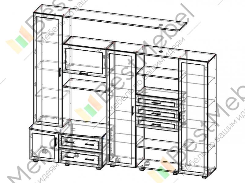 Изящная мебельная стенка Илинда украсит собой любое помещение. Отличительная особенность модели ‒ ориентация под телевизоры с соотношением сторон 4:3. Если Вы обладаете именно такой панелью, изделие станет правильным выбором. Кроме того, стенка имеет множество шкафчиков и тумбочек, которые позволяют разместить все необходимые предметы. Здесь есть и открытые полки для сувениров, красивых книг или посуды. Заказать изделие можно у нас на сайте.