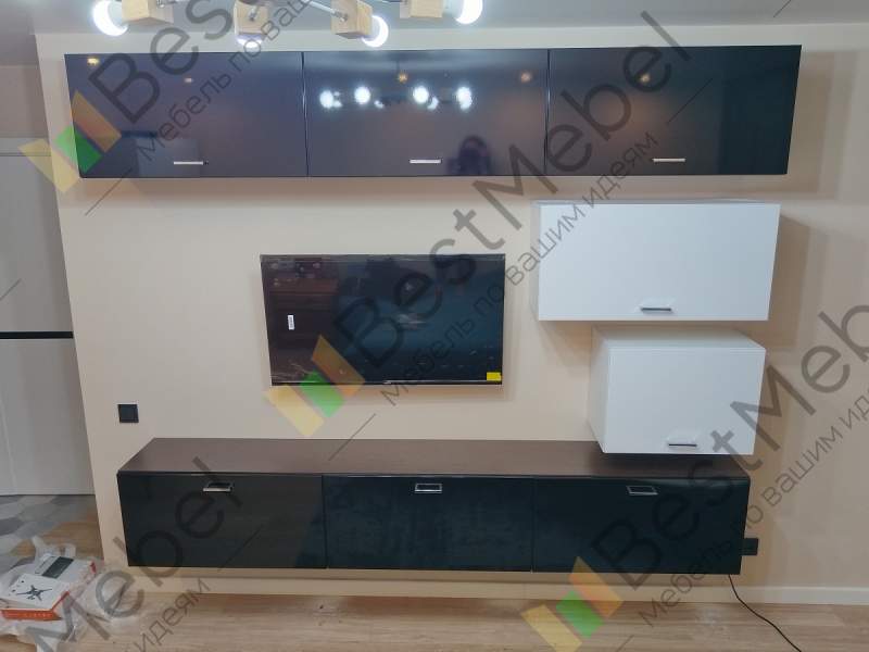 Выполненная в модном черно-белом глянце, стенка Кубика Плюс V8.2 BMS – отличное решение для небольших современных гостиных. Модель состоит из нескольких модулей, которые вы сможете комбинировать самостоятельно. Навесная тумба под ТВ сэкономит в помещении место и облегчит уборку. Закрытые настенные отделения позволят компактно разместить множество домашних мелочей. Эргономичная фурнитура сделает пользование особенно комфортным.