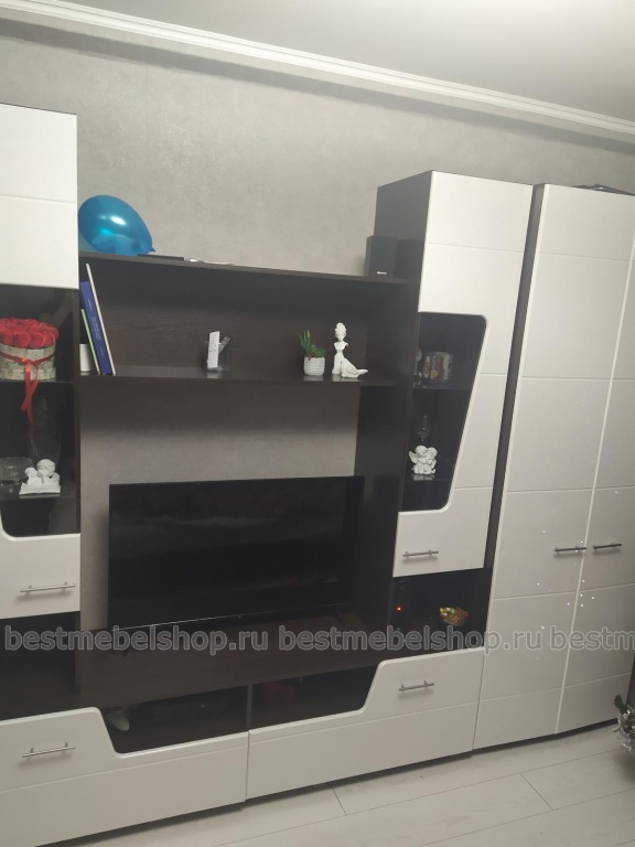 Недавно приобрели такую стенку + шкаф. Отличный вариант для небольшой гостиной. Шкаф и пеналы вместительные, удобны для применения. Внешне стенка смотрится очень даже красиво! Можно выбрать желаемый размер шкафов на сайте и подобрать цвета. Доставка в срок, без опозданий. Упаковано хорошо. Качество не идеальное конечно, но своих денег стоит однозначно!