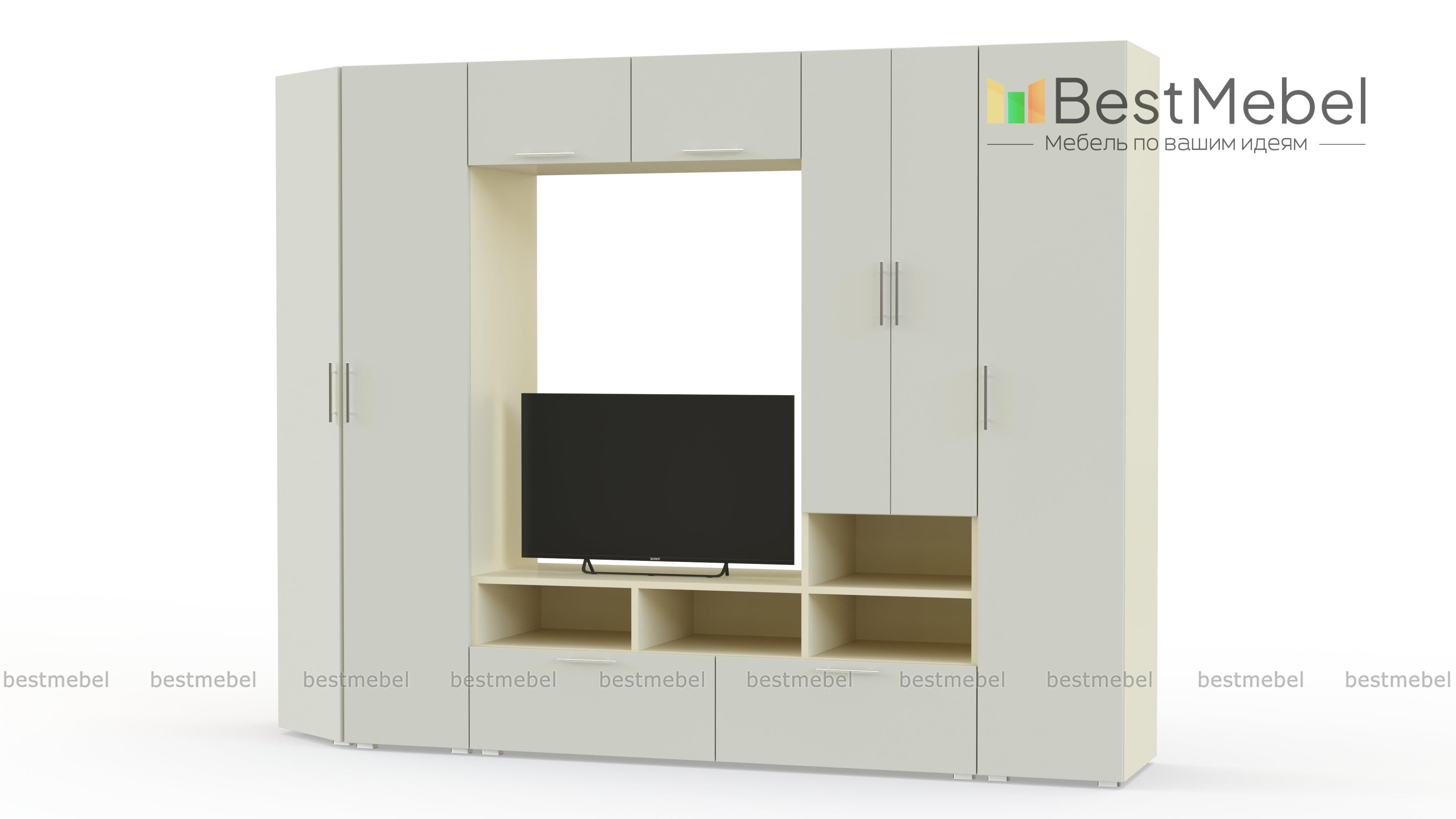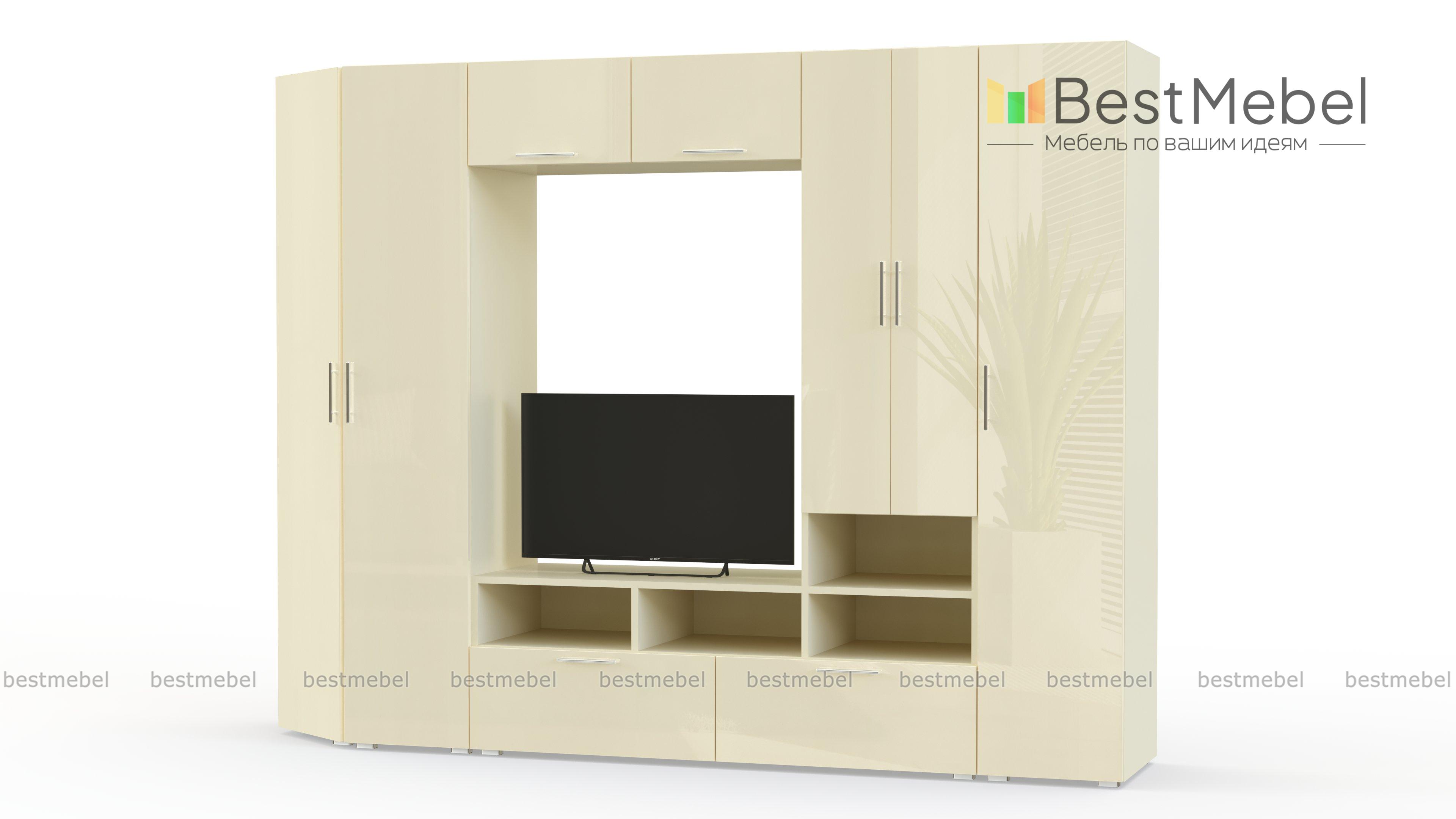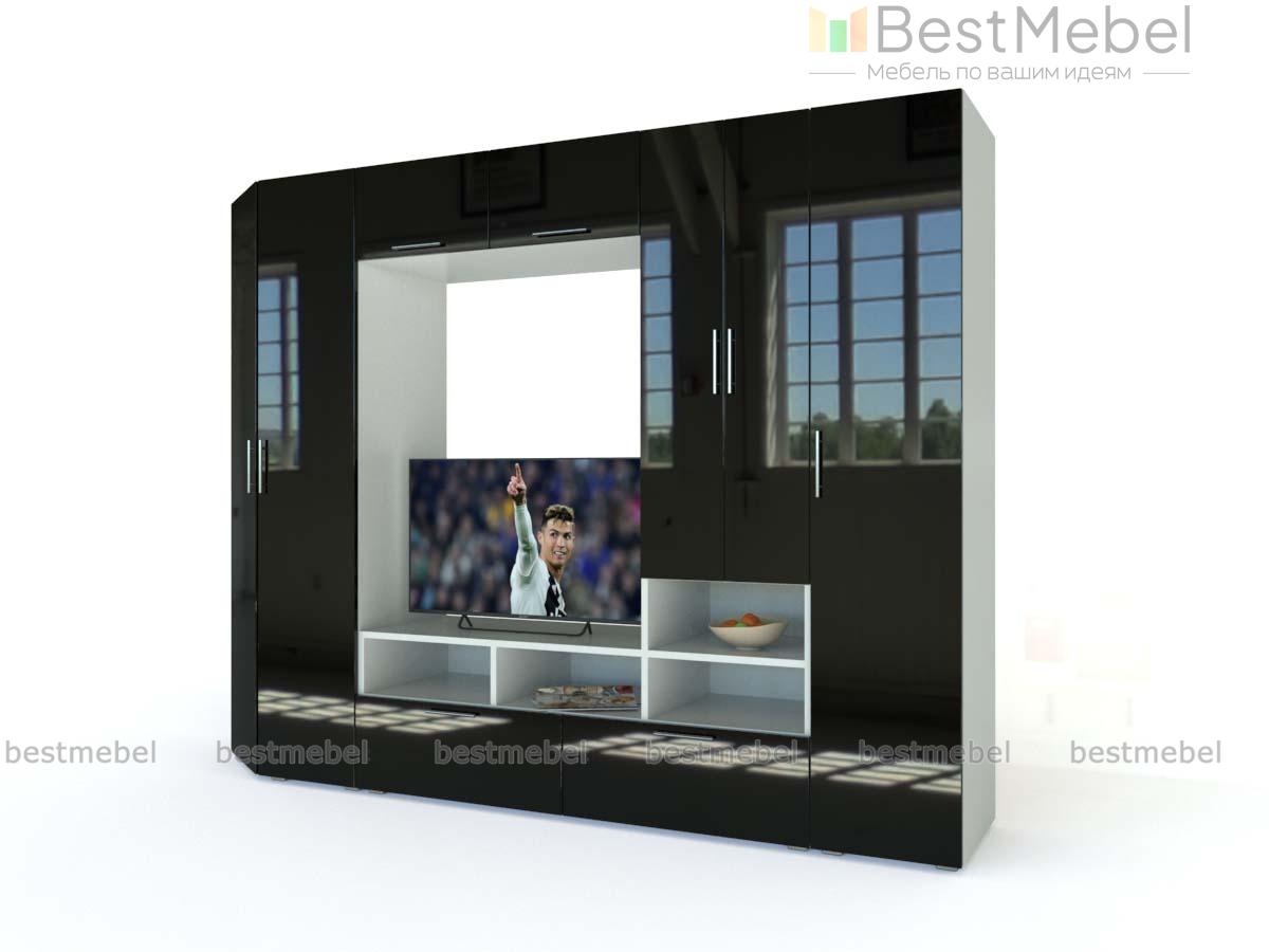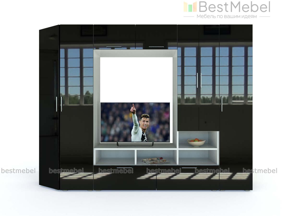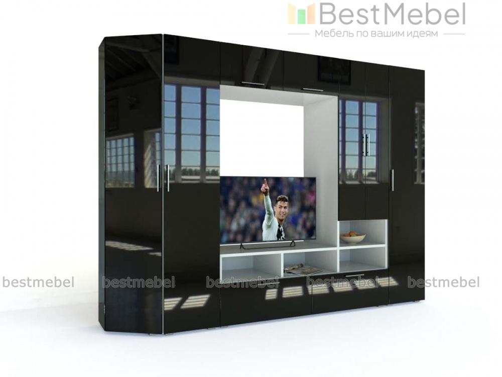 Стенка Марианна 14 BMS с черными глянцевыми фасадами отличается эффектным минимализмом и нестандартно оформит зону отдыха. Строгая геометричная композиция с нишей под ТВ в центре включает в себя тумбу для аппаратуры, пеналы с полками, распашной шкаф, скошенную торцевую колонку и антресоль с откидными вверх дверцами. Благодаря разноплановым отделениям вы сможете компактно разместить большое количество вещей и эффектно расположить предметы декора. Купить стенку Марианна 14 BMS приглашаем в наш интернет-магазин.