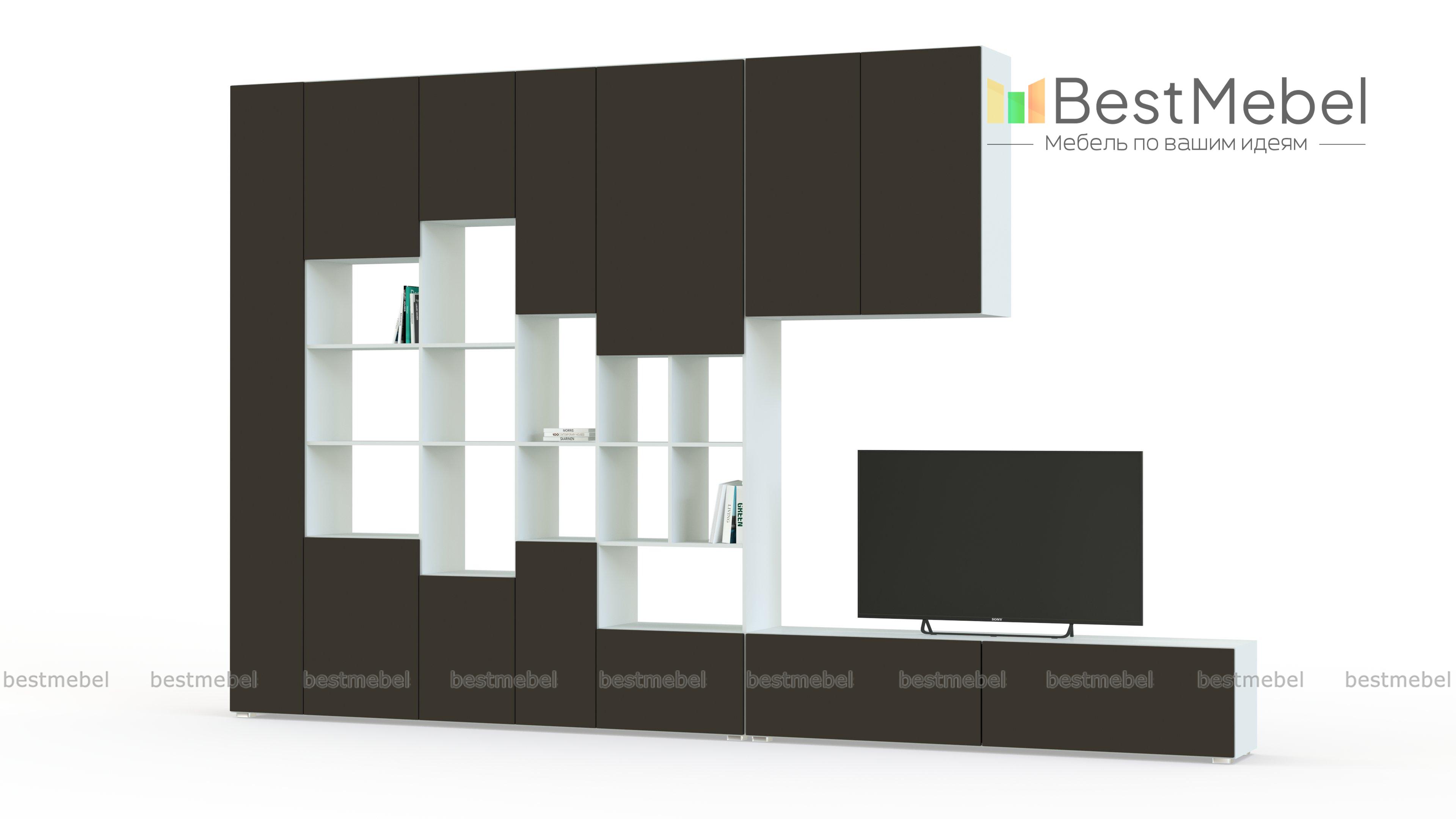 Стенка Полли 13 BMS – линейная композиция, которая будет эффектно смотреться в просторных помещениях. Модульный комплект включает в себя широкую низкую тумбу под аппаратуру, секцию с открытыми и глухими полками, а также навесной распашной шкафчик. Большое количество мест для хранения позволит разместить домашний текстиль, бытовые мелочи, книги предметы декора. Геометричность дизайна подчеркнет контрастная цветовая гамма. Купить стенку Полли 13 BMS вы сможете в нашем интернет-магазине по отличной цене.