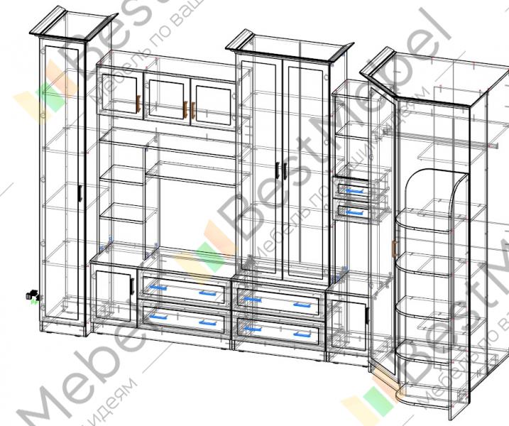 Стенка Шумера BMS – это крупногабаритная классическая модель, которая порадует владельцев просторных гостиных элегантным традиционным дизайном и вместительностью. Угловая композиция включает в себя все необходимое для хранения одежды, книг из домашней библиотеки, размещения посуды, предметов декора и аппаратуры. Рамочные фасады выполнены в теплых древесных тонах и украшены карнизом, фасад платяного шкафа – зеркальный. Купить стенку Шумера BMS по выгодной цене вы сможете в нашем интернет-магазине.