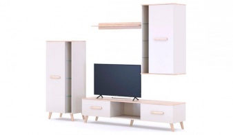 Стенка Скайли BMS имеет практичную модульную конструкцию и включает в себя напольные и навесные элементы. Лаконичная композиция в сочетании древесных тонов и белого подчеркнет достоинства интерьера в скандинавском стиле и оптимальна для малогабаритных помещений. В комплект входят широкая низкая тумба под аппаратуру с ящиками и нишей, комбинированный со стеллажом шкаф, витрина и открытая полка для книг и декоративных мелочей. Купить стенку Скайли BMS для современной гостиной приглашаем в наш интернет-магазин.