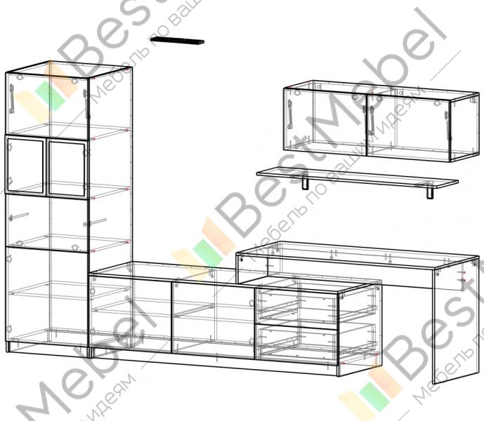 Стенка со столом Эрин 34 BMS гармонично впишется в большинство современных интерьеров благодаря минималистичному дизайну и значительно сэкономит пространство. Композиция включает в себя широкую тумбу под ТВ, на которую опирается письменный стол с просторной рабочей поверхностью, комбинированный с витриной шкаф и навесные полки – с глухим фасадом и открытая книжная. Купить стенку со столом Эрин 34 BMS, выполненную в эффектной черно-белой гамме, вы сможете в нашем интернет-магазине.