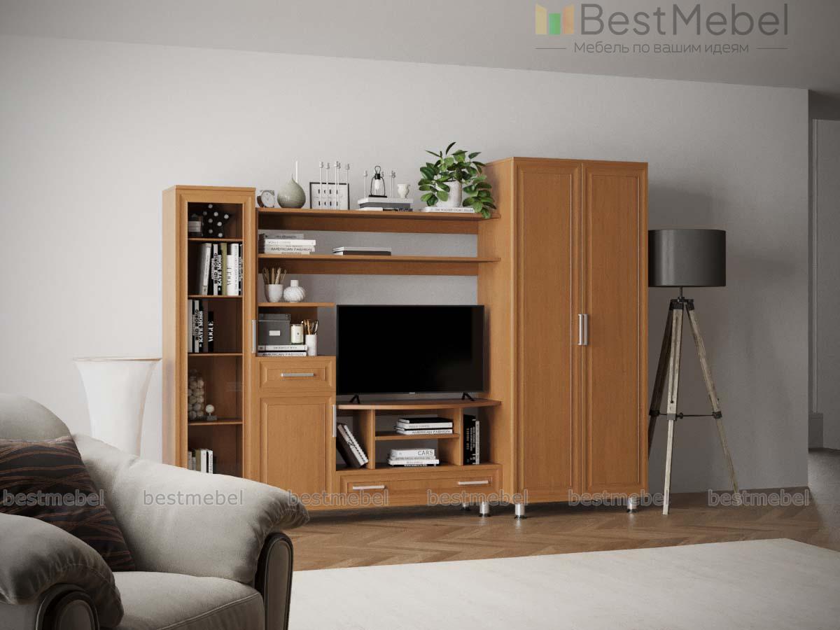 Уникальное сочетание классики и современности никого не оставит равнодушным. Триумф-2 станет идеальным решением для небольших гостиных. Центральное место отведено для ТВ, размер ниши позволит разместить в ней модель и с большой диагональю. Платяной шкаф, пенал, тумба, дополненная открытым отделением для дисков и ящичком для мелких предметов: зарядок, ключей ‒ все продумано до мелочей. Комодный ящик внизу позволит с удобством хранить личные вещи. Купить недорого стенку Триумф-2 можно в нашем интернет-магазине.