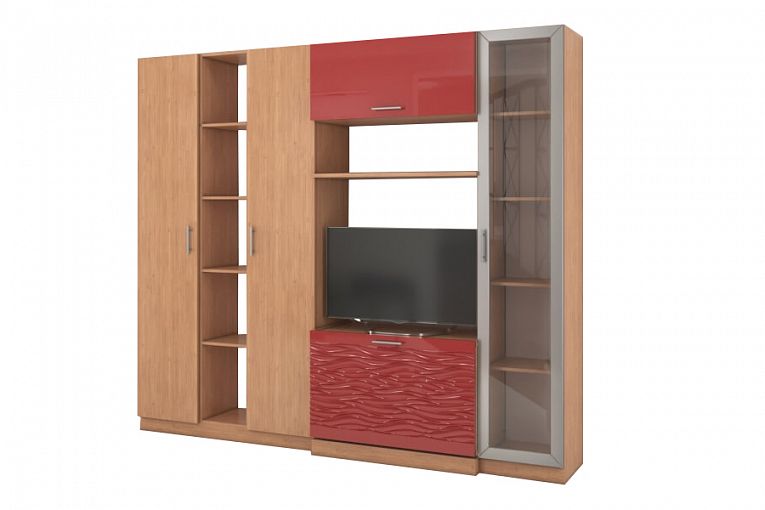 Стенка Вельвет 16 BMS поможет оборудовать уютную и функциональную гостиную в современном стиле. Лаконичная модель отличается визуальной легкостью и не будет перегружать интерьер лишними деталями. В комплекте оригинальный комбинированный шкаф с бельевыми колонками и стеллажом, тумба под ТВ, антресоль и высокая вместительная витрина. Фасады – актуальное сочетание древесных тонов и цветного глянца с 3D рисунком. Купить стенку Вельвет 16 BMS, подобрав оптимальные параметры, вы сможете в нашем интернет-магазине по приятной цене.