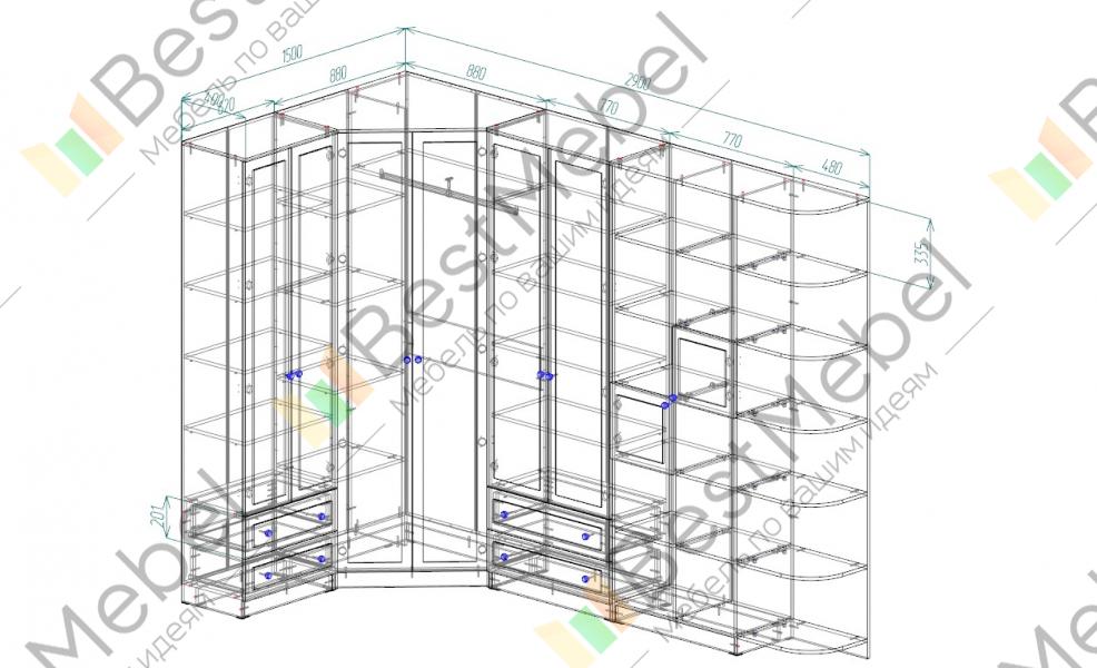 Угловая стенка Евгения 30 BMS выполнена в нейтральных древесных тонах и будет гармонично смотреться как в классическом, так и современном интерьере. Композиция, включающая в себя два просторных распашных шкафа с полками и штангой, застекленный шкаф и комбинированный стеллаж с торцевым радиусным завершением, оптимально подходит для хранения одежды, книг из домашней библиотеки и множества бытовых мелочей. Фасады стенки декорированы рамочным профилем. Купить угловую стенку Евгения 30 BMS приглашаем недорого в наш интернет-магазин.