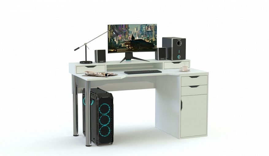 Геймерский стол Максимус-7 BMS станет практичным выбором для небольших помещений благодаря компактным размерам и визуальной легкости. Выполненная в универсальном белом цвете модель оборудована эргономично вырезанной столешницей с надстройкой под монитор и периферию, и тумбой с двумя выдвижными ящиками для мелочей и распашным отделением. Неровности пола скорректируют хромированные опоры с регулировкой высоты. Купить геймерский стол Максимус-7 BMS вы сможете в нашем интернет-магазине по доступной цене.