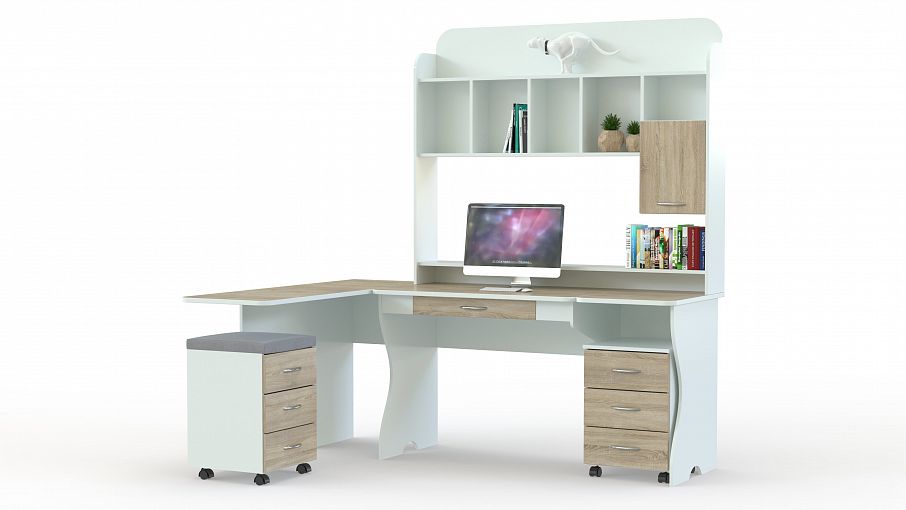 Угловой компьютерный стол Анкар BMS отличается современным дизайном и широким функционалом. Практичная комбинированная модель оборудована регулируемой столешницей с выдвижным ящиком для мелочей и надстройкой, которая поможет разместить монитор и оптимизировать хранение книг и документации. Дополняют стол две выкатные тумбы и боковой элемент, увеличивающий рабочую поверхность. Купить угловой компьютерный стол Анкар BMS вы сможете в нашем интернет-магазине, подобрав цветовое решение из богатой палитры.