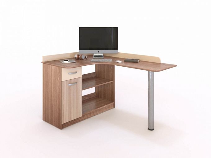 Компьютерный угловой стол Коллаж BMS – простая и функциональная модель для учебы, работы за компьютером и творческих занятий. Угловой стол сэкономит полезную площадь комнаты и компактно разместит под рукой все самое необходимое. Скругленная по краям столешница оборудована защитными бортиками, которые уберегут письменные принадлежности от случайного падения, и дополнена тумбой с выдвижным ящиком для мелочей, распашным отделением и открытыми полками. Купить компьютерный угловой стол Коллаж BMS недорого вы сможете в нашем интернет-магазине.