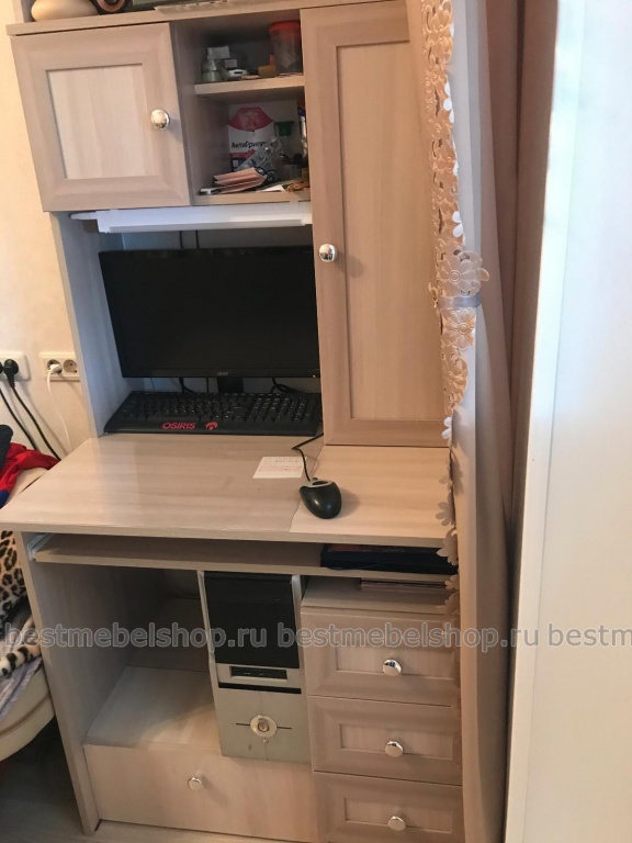 Купили на этом сайте компьютерный стол. Заказ 00000477548, компьютерный стол Млайн 36 (800х1700х600). Выбирали под цвет остальной мебели - на сайте достаточно большая цветовая палитра, поэтому выбрали нужный цвет. Собирали стол сами, это оказалось несложно, вся фурнитура была в наличии. Много удобных ящичков для всяких мелочей. Хороший удобный стол, нам понравился.