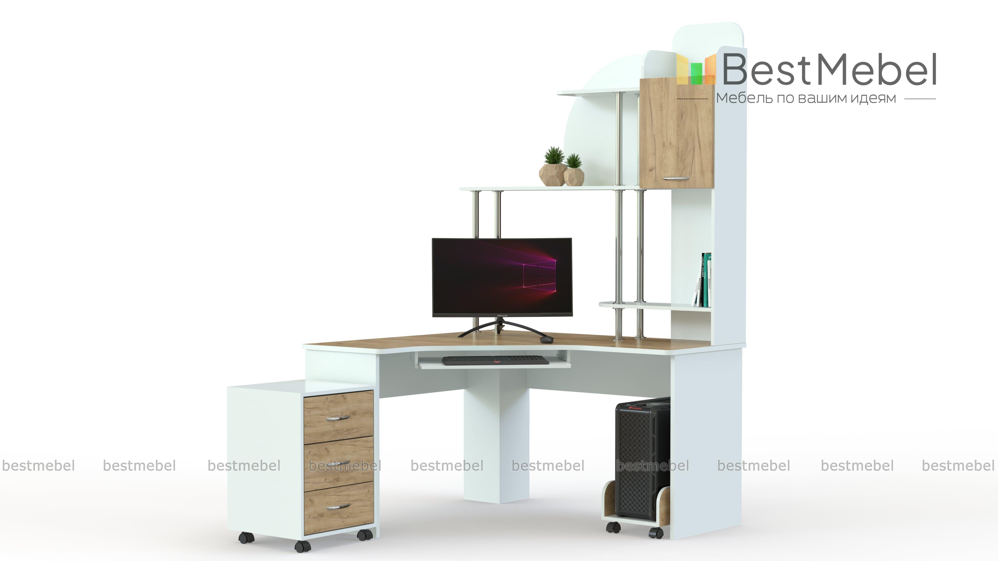 Компьютерный стол Пресли СК - 23 BMS – это практичная модель с надстройкой, которая поможет сэкономить пространство и разместить под рукой все необходимые рабочие материалы. Комфортная столешница эргономичной формы дополнена выдвижной панелью для клавиатуры, надстройка оборудована распашным отделением и открытыми полками. Подставка под системный блок и тумба оснащены колесными опорами для легкости перемещения. Купить компьютерный стол Пресли СК - 23 BMS вы сможете в нашем интернет-магазине, подобрав оптимальное цветовое решение.