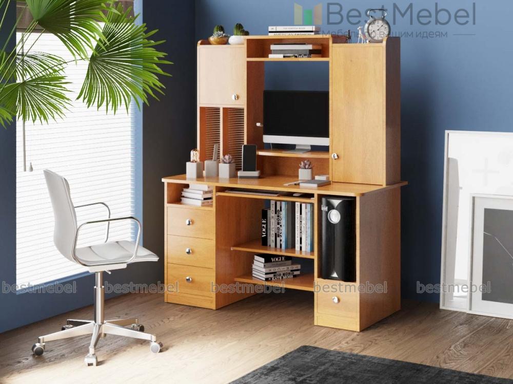 Стол компьютерный СК Планета 5 BMS поможет даже на небольшом пространстве обустроить комфортное рабочее место. Модель имеет надстройку с нишей под монитор, шкафчиками и полками для периферийных устройств, а под столешницей расположены выдвижные ящики, отделение для системного блока и полки. Скругленные углы столешницы и боковин делают пользование комфортным и безопасным. Купить стол компьютерный СК Планета 5 BMS приглашаем в наш интернет-магазин, подобрав фурнитуру и цвет по каталогу.