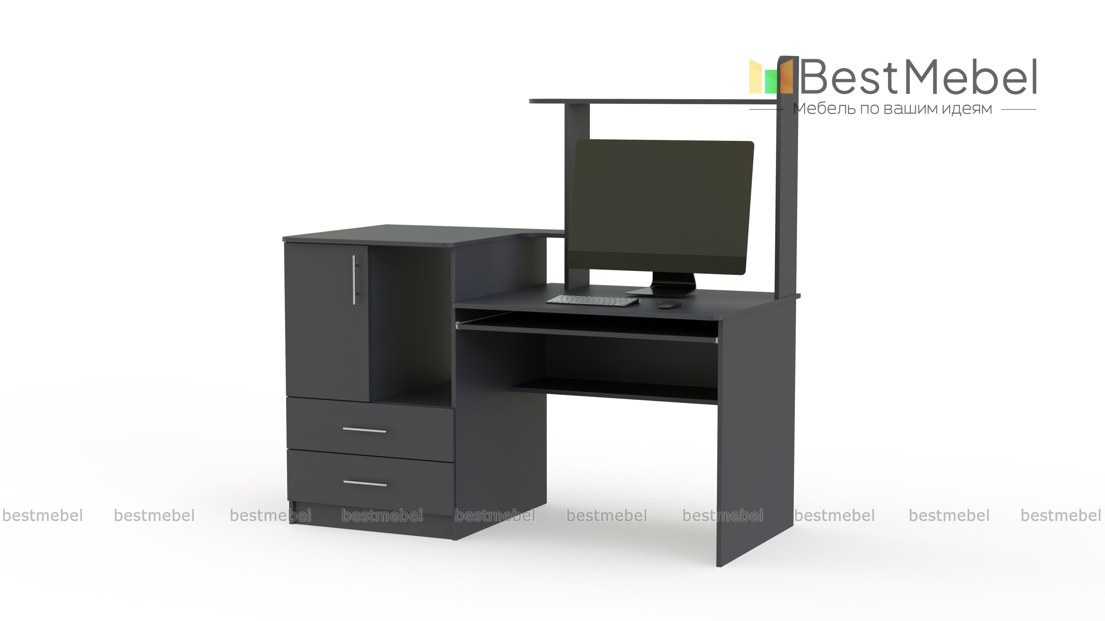 Компьютерный стол №2 Р является очень практичным предметом мебели. Он оснащен 2-я ящиками, отделением с распашной дверью, открытой нишей, выдвижной панелью для клавиатуры. На открытых полках можно разместить комнатные растения, декоративные украшения, фоторамки. Лаконичный стол выполнен в актуальных светлых тонах и оборудован просторной столешницей. Заказать данную модель можно в нашем интернет-магазине в разных размерах и цветовых решениях.