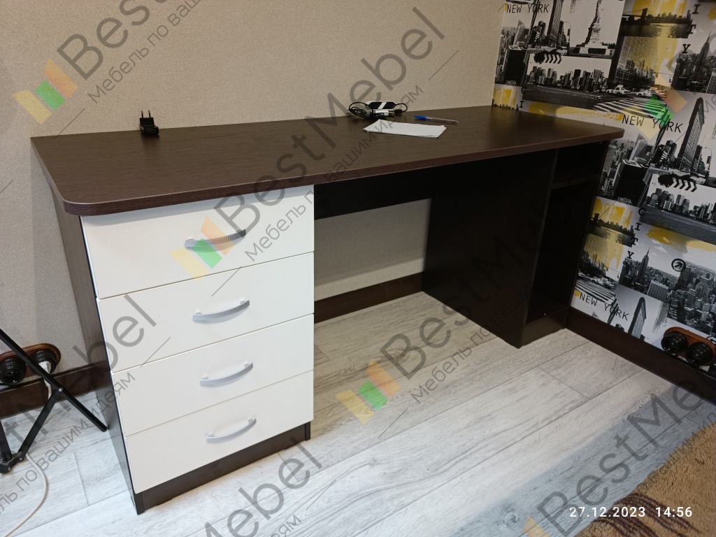 У стола не стандартные размеры, также были пожелания по отдельным элементам (один из которых вырез в задней части столешницы).Внешне очень понравился, хорошо вписался. Во качество на четверку, был небольшой скол в невидимой части стола и пара царапин с тыльной стороны - это не критично так как не видно. Так же в комплекте шли черные мебельные подпятники, хотя к такой расцветки - бежевые (может под цвет ручек ящика для контраста - не критично) Собирал сам, легко разобрался (есть электронный чертеж с описанием и номером детали) крепеж в полном комплекте.Хороший рабочий стол, по приемлемой цене. Спасибо!
