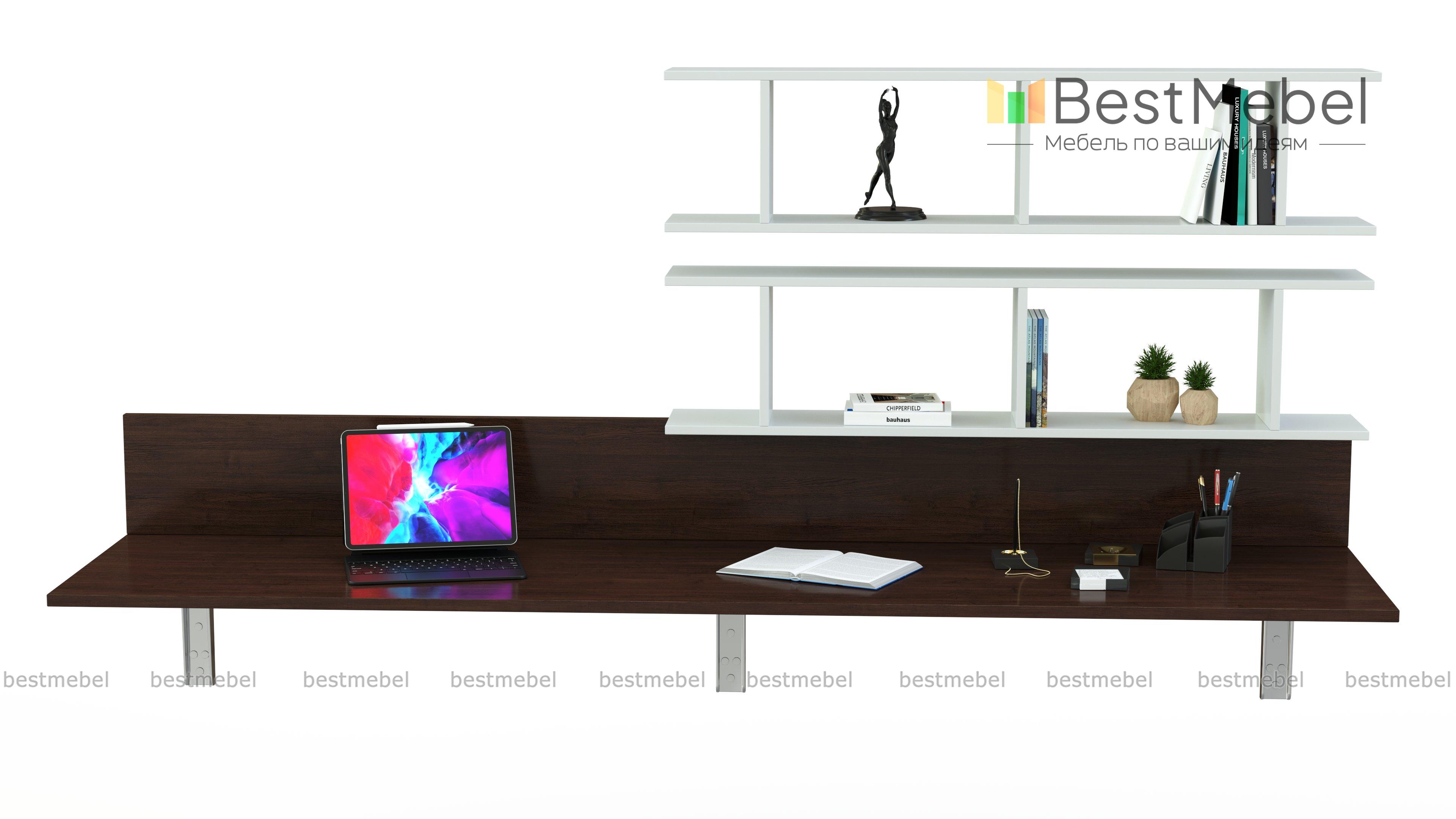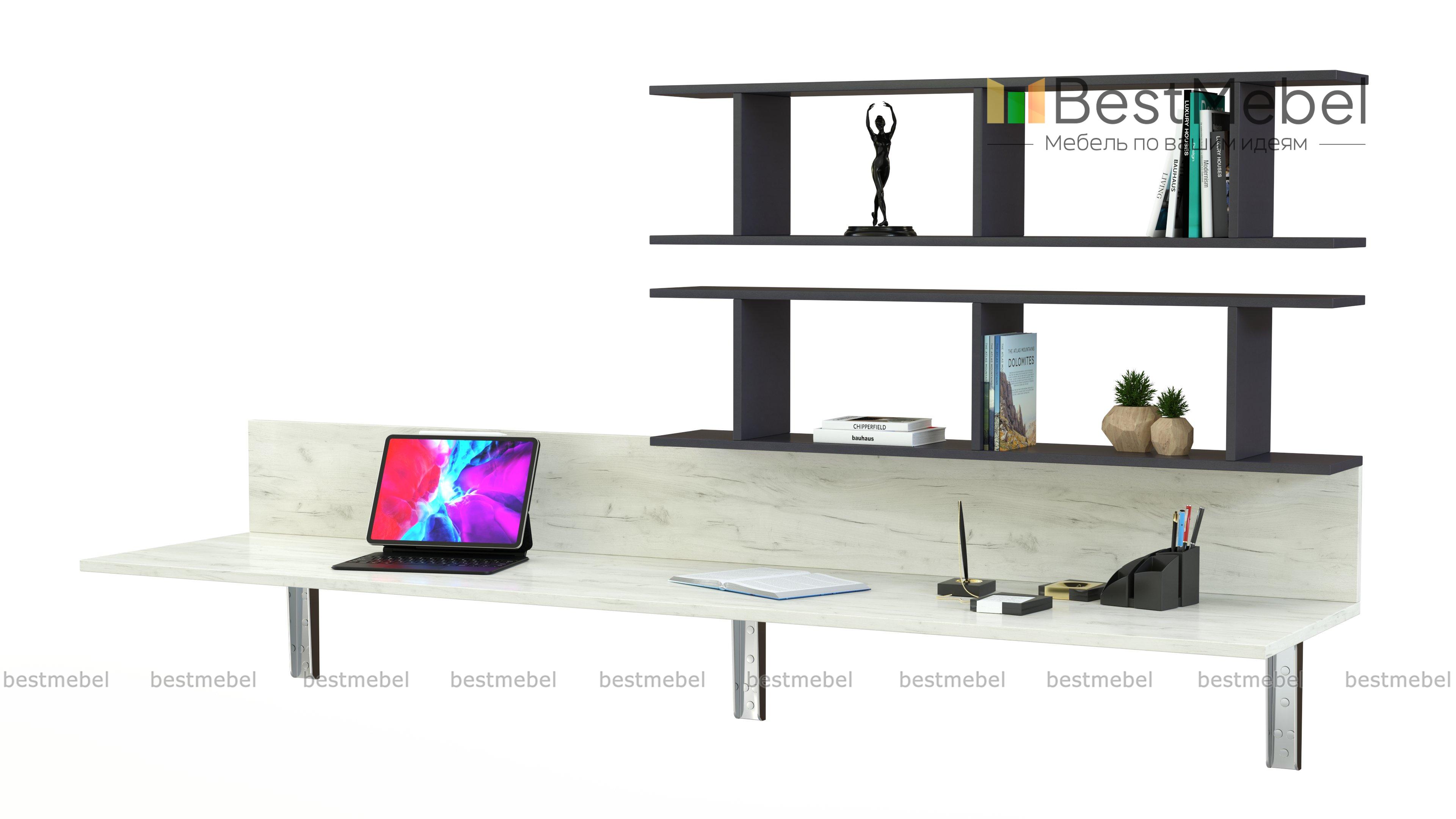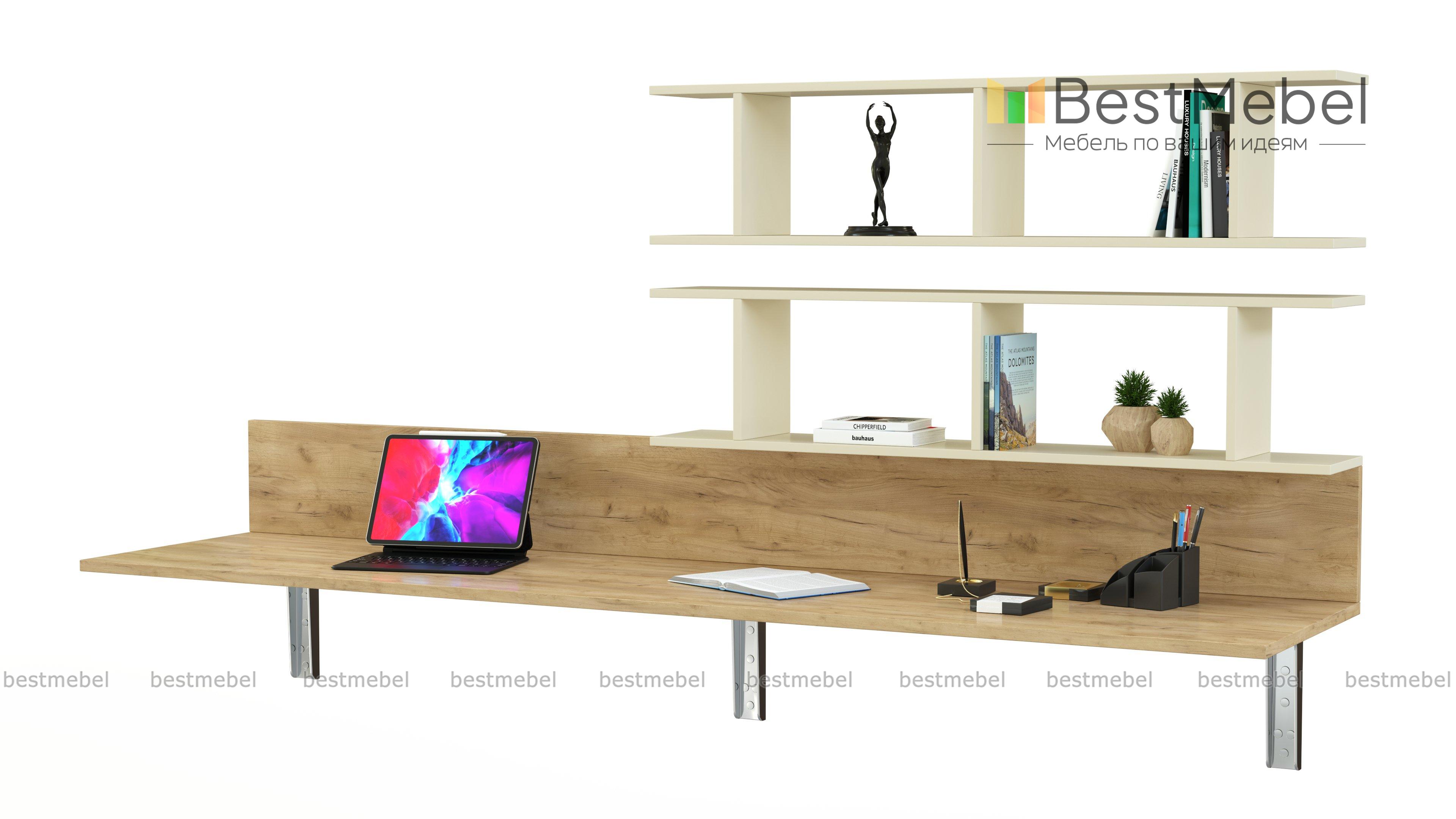 Навесной письменный стол Прима 28 BMS отличается максимально лаконичным дизайном и представляет собой широкую столешницу с задней панелью в древесных тонах. Просторная рабочая поверхность позволит разместить письменные принадлежности, ноутбук и декоративные мелочи. Дополнение в виде открытых полок с разделительными перегородками поможет с хранением под рукой книг и прочих рабочих материалов. Купить навесной письменный стол Прима 28 BMS для комфортной работы или учебы приглашаем в наш интернет-магазин.