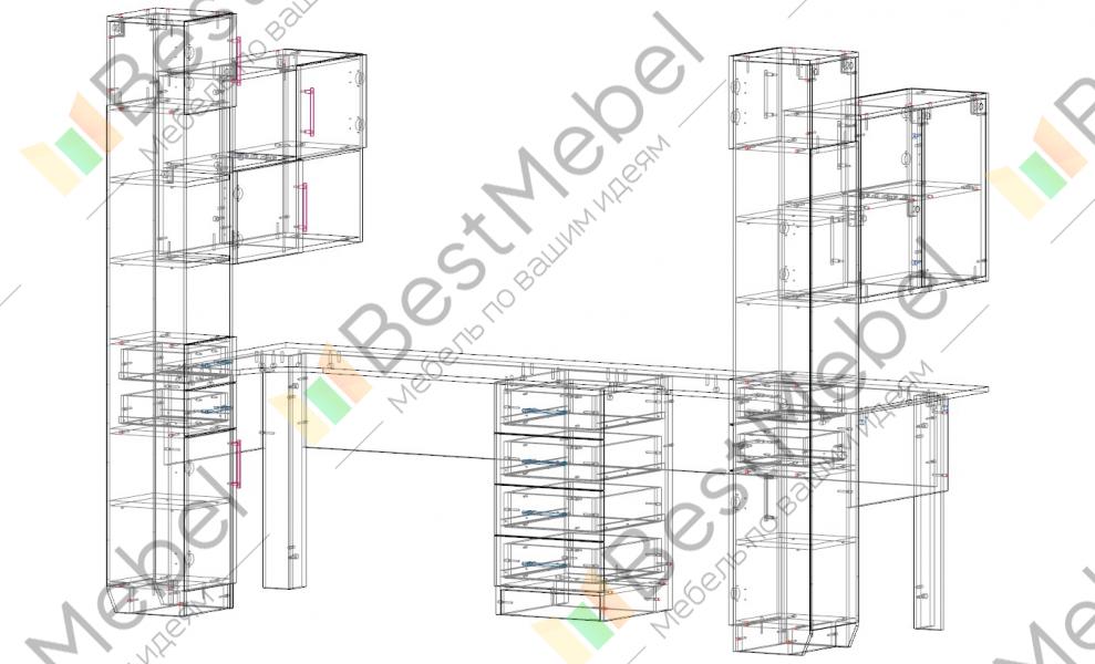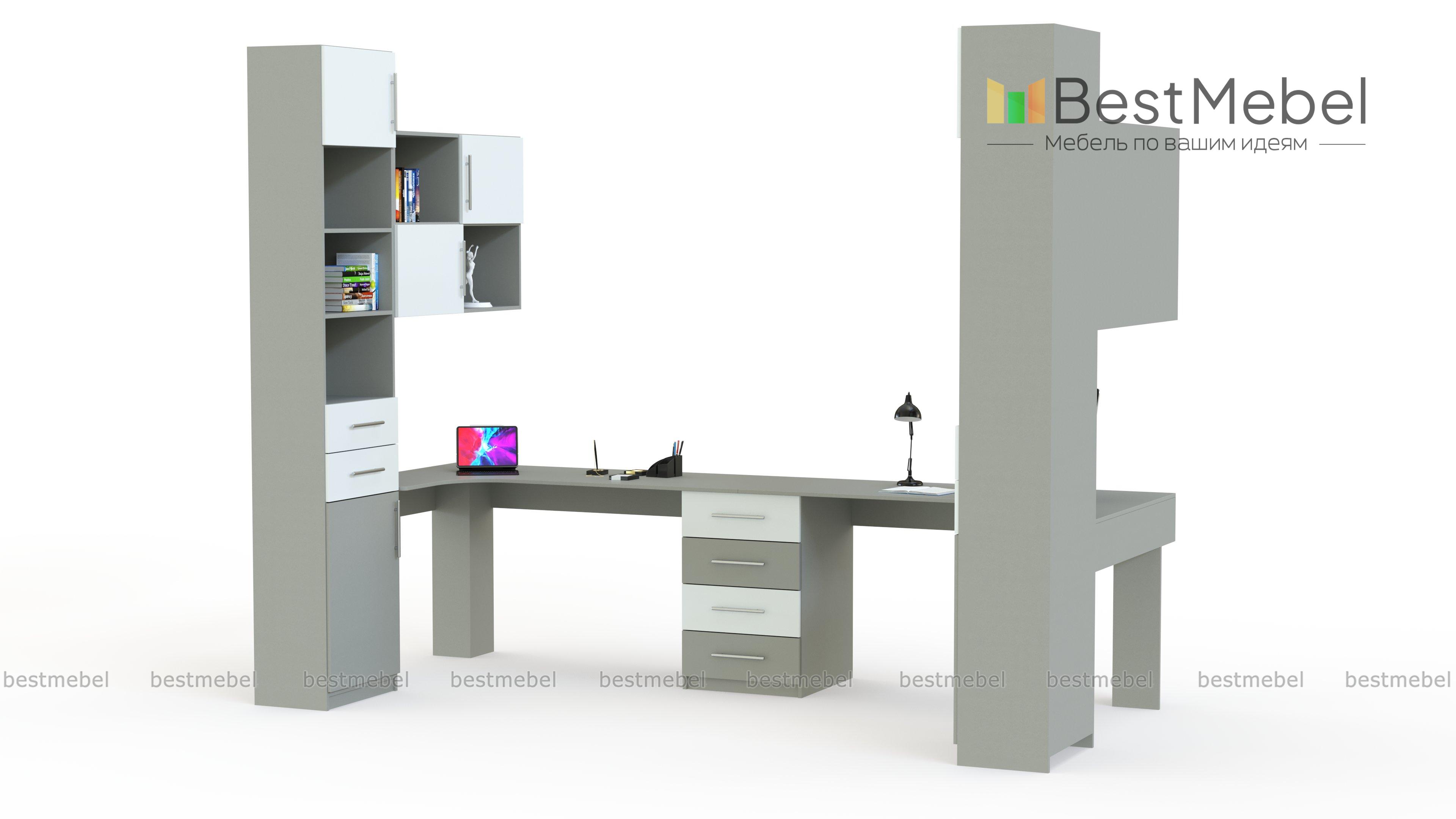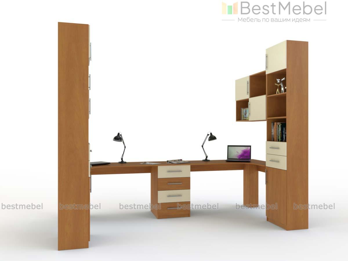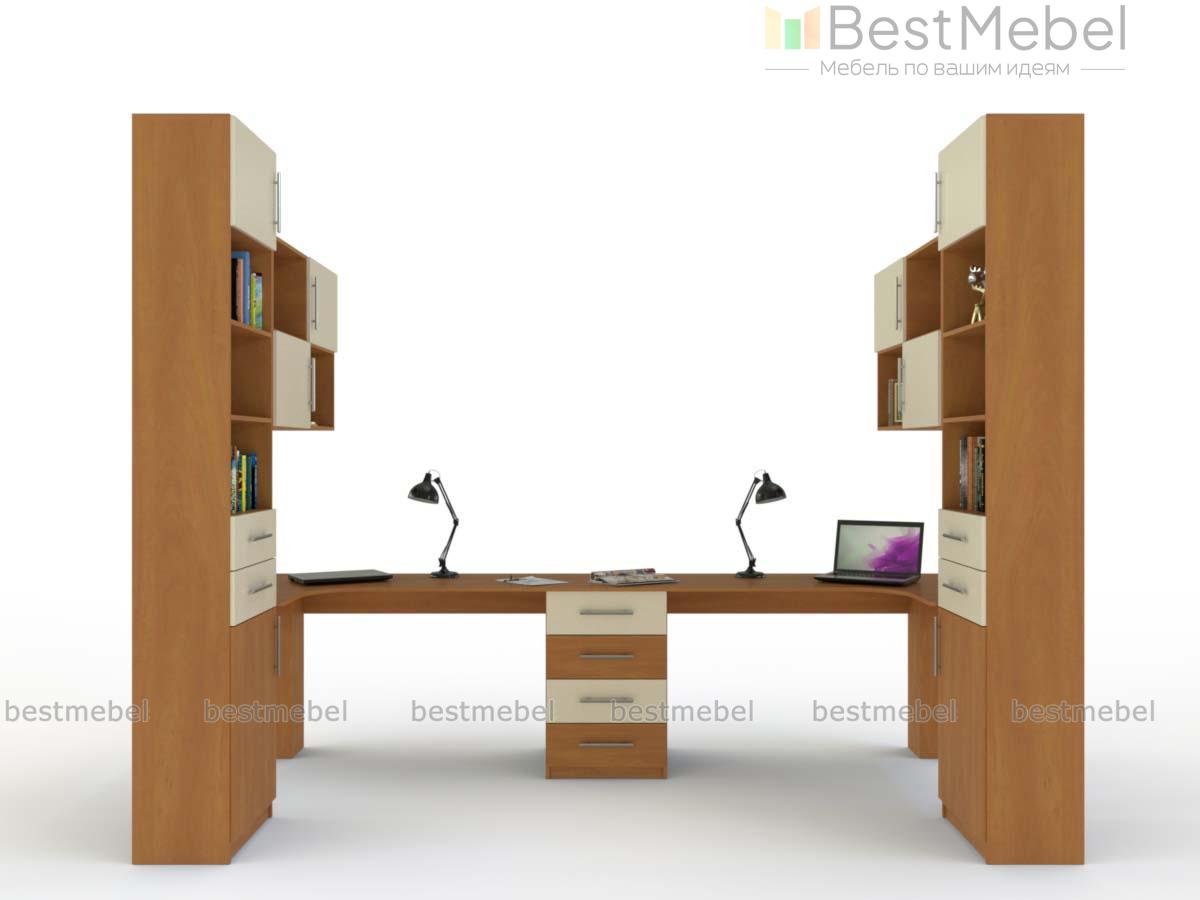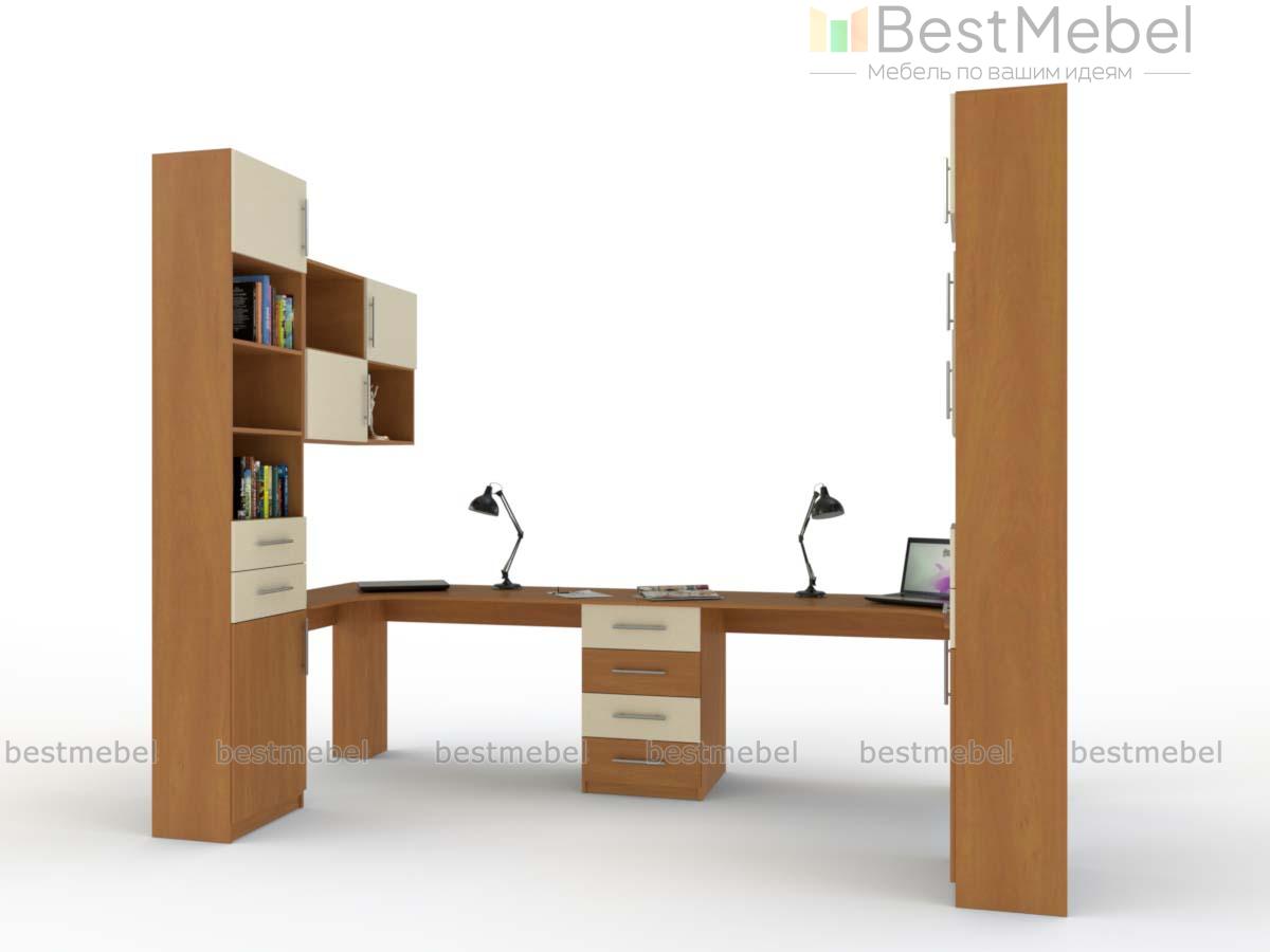 Письменный угловой стол для двоих Роки 16 BMS поможет эффективно использовать доступное пространство и обустроить комфортную рабочую зону. Широкая П-образная столешница с выкатной панелью под клавиатуру располагается вдоль окна, опираясь на регулируемые стойки. Дополняют композицию тумба с выдвижными ящиками для хранения канцелярских принадлежностей и вместительный книжный стеллаж. Купить письменный угловой стол для двоих Роки 16 BMS, выполненный в теплой коричнево-бежевой гамме, приглашаем в наш интернет-магазин.