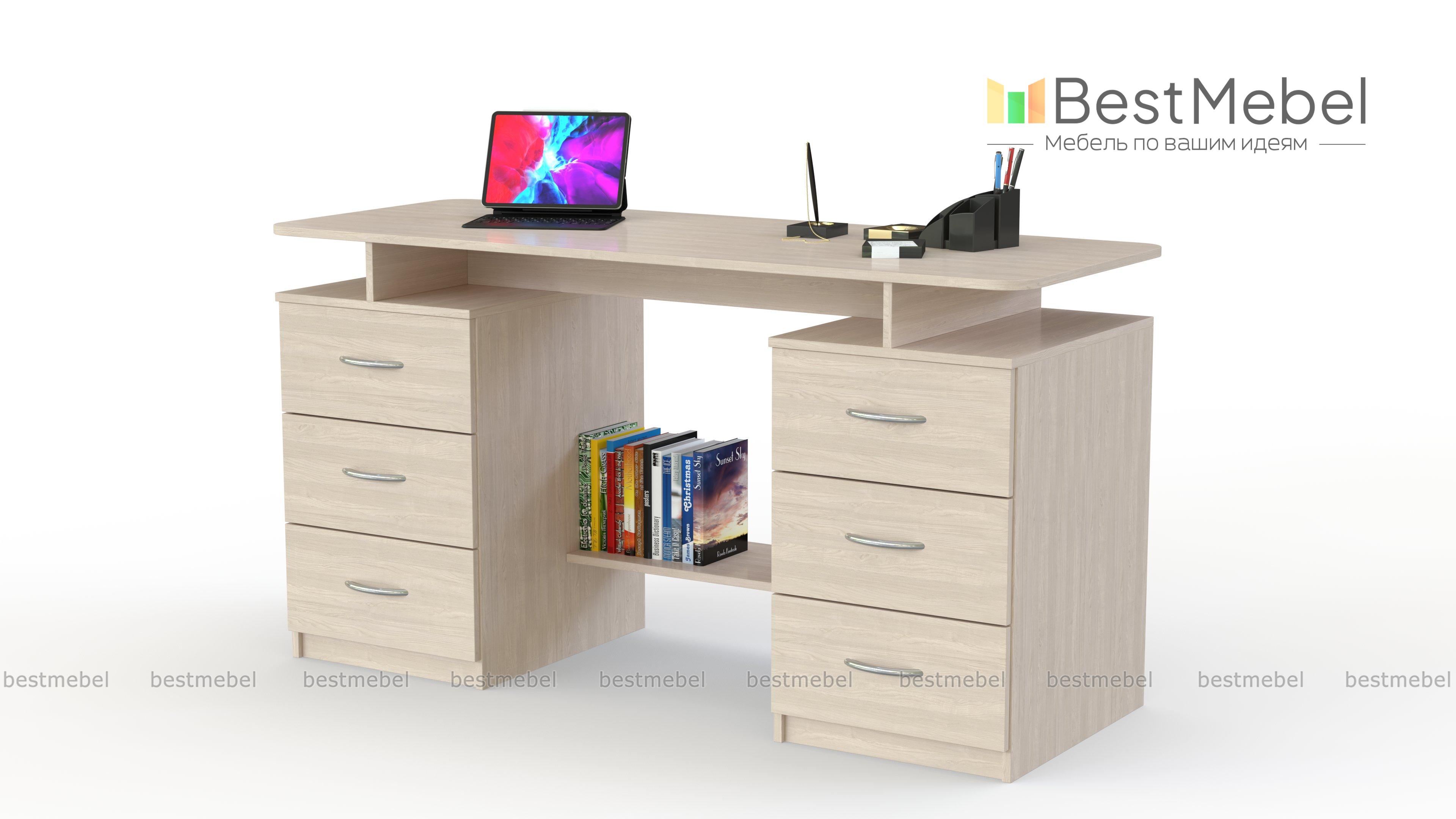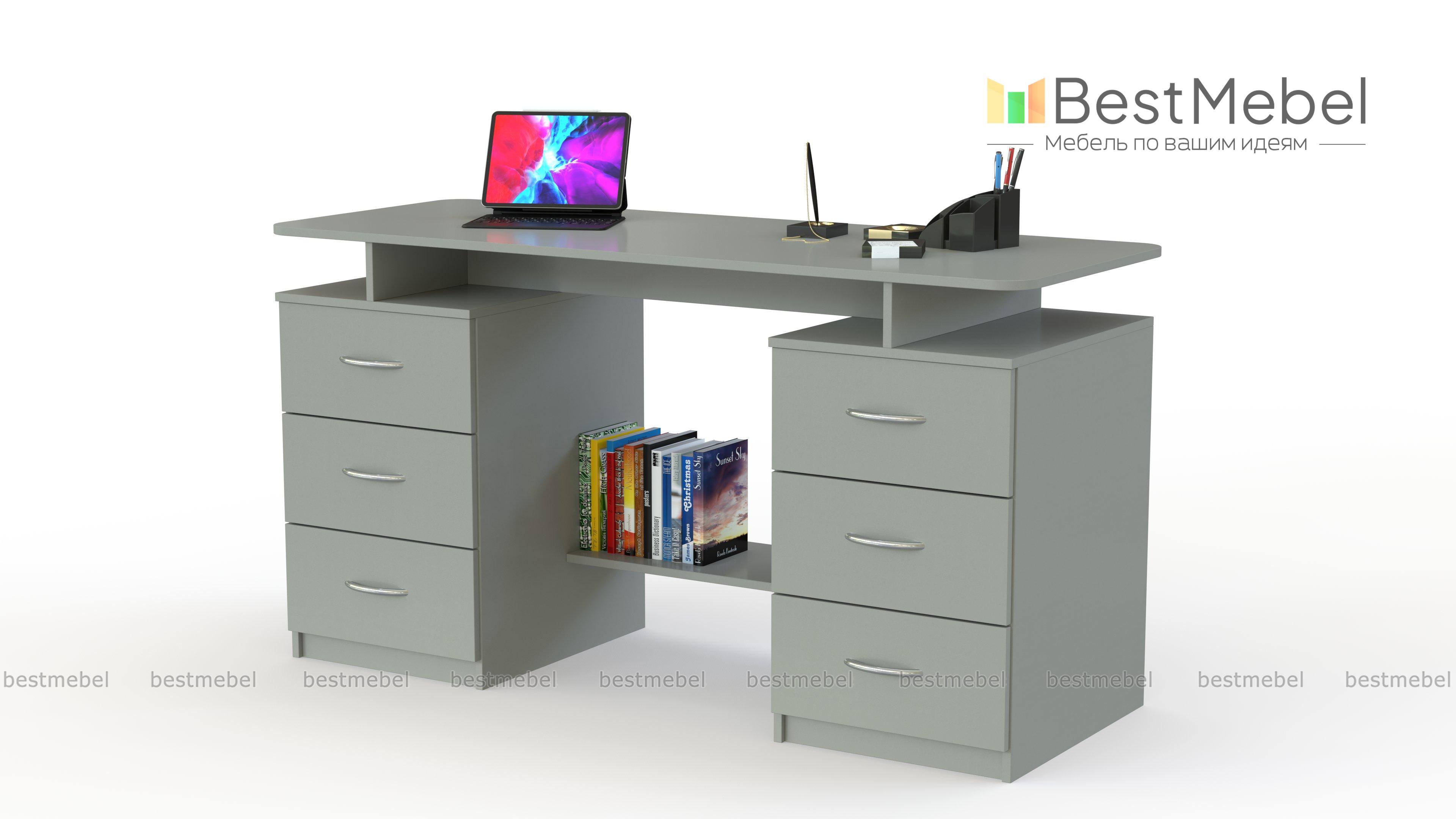 Недавно заказал  письменный стол Колизей.  Порадовало что можно варьировать размеры (ширину,высоту,глубину, выбирать цвет изделия) Стол имеет 6 выдвижных очень вместительных  ящиков. Внизу предусмотрена перекладина (удобно ставить ,например, рюкзак) . Качество изделия хорошее,стол отлично вписался в комнату.  Очень доволен приобретением,рекомендую.                                     |