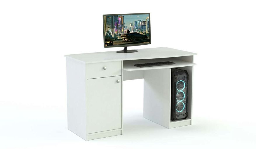 Письменный стол Соня BMS – это стильная и функциональная мебель, которая придется по нраву всем любителям современного стиля. Модель довольно вместительная и впишется в интерьер практически любого домашнего помещения. Изделие располагает отделением за дверкой распашного типа, ящичком выдвижного типа, и открытыми полочками. В эти составляющие можно поместить различные бытовые предметы, декоративные украшения, письменные и канцелярские принадлежности, документы. Купить письменный стол Соня BMS по низкой цене можно на портале нашего интернет-магазина буквально за пару кликов.