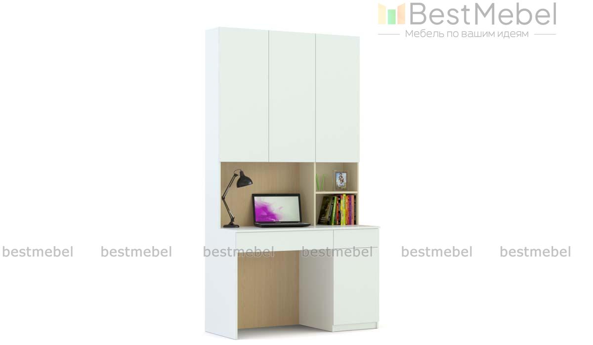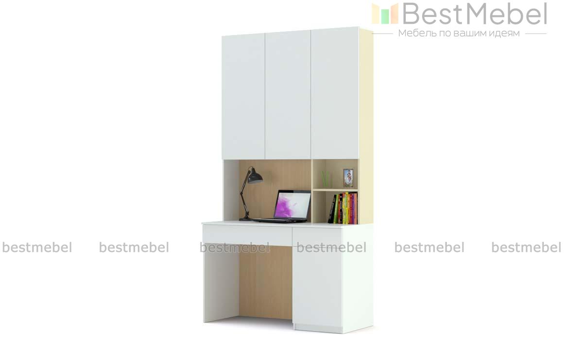 Письменный стол Плато 2 BMS легко вписывается в ниши и позволит оборудовать комфортное рабочее место даже в малогабаритном помещении. Письменный стол с двумя выдвижными ящиками и распашным отделением дополнен надстройкой с открытыми полками для книг и канцелярских мелочей и вместительными шкафчиками с глухими фасадами. Светлые древесные тона гармонично сочетаются с белым и ванильным. Купить письменный стол Плато 2 BMS по доступной цене вы сможете в нашем интернет-магазине.