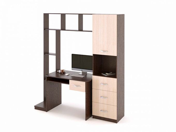 Стол Лаки СК-01 BMS характеризуется актуальным дизайном и продуманной до мелочей конструкцией, которая позволит создать эргономичное рабочее место. В центре композиции располагается компьютерный столик с полкой и выдвижным ящиком, а по периметру – стеллаж с нишей под системный блок, открытые полки и комбинированный пенал с ящиками и распашным отделением. Строгие геометричные формы модели подчеркнет контрастная цветовая гамма. Купить стол Лаки СК-01 BMS для успешной работы или учебы приглашаем в наш интернет-магазин.