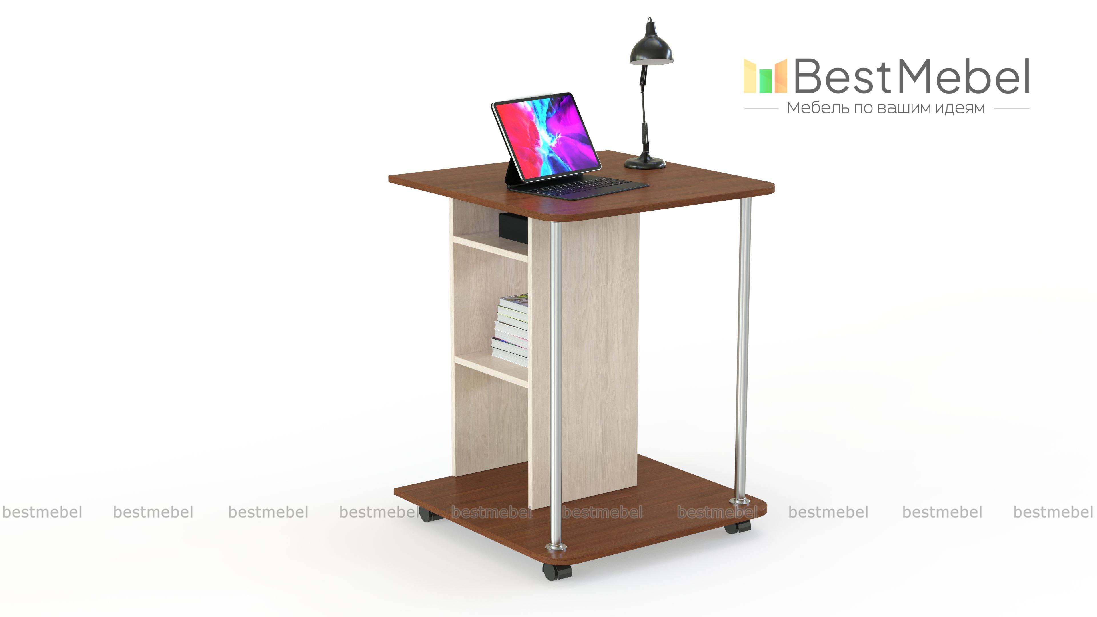 Стол письменный Нота-70 BMS легко перемещается благодаря колесикам и позволит с комфортом поработать за ноутбуком. Модель оборудована квадратной столешницей, которая соединяется с основанием при помощи двух хромированных стоек, и тумбы. На открытых полках вы сможете разместить сопутствующие аксессуары, папки и необходимые под рукой мелочи. Купить стол письменный Нота-70 BMS, выполненный в теплой коричнево-бежевой гамме, приглашаем недорого в наш интернет-магазин.