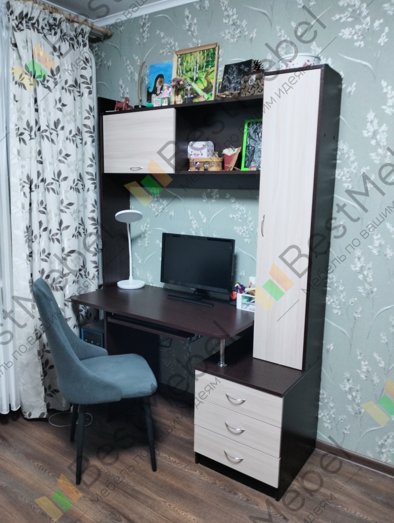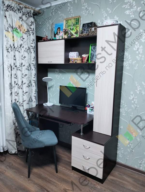 Заказ №645240. Увеличили высоту до 190см, попросили сделать дополнительную нишу под полкой. Сделано качественно, за исключением небольших нюансов (в одном месте есть микросколы на столешнице, по-мне так - не критично). В целом довольны качеством, удобством сборки (все детали отмечены и подписаны) и быстрой доставкой. Плюс в подарок привезли за 1р. письменный стол.
