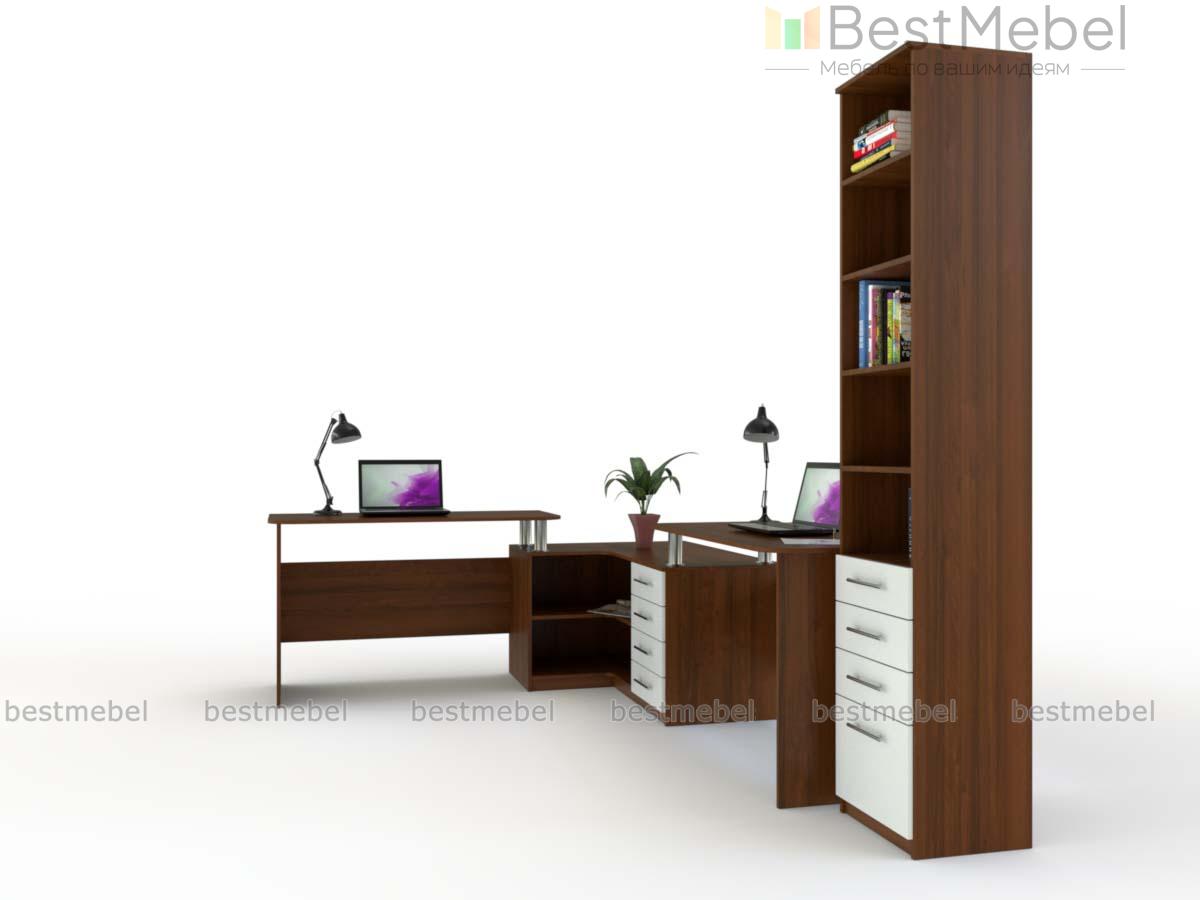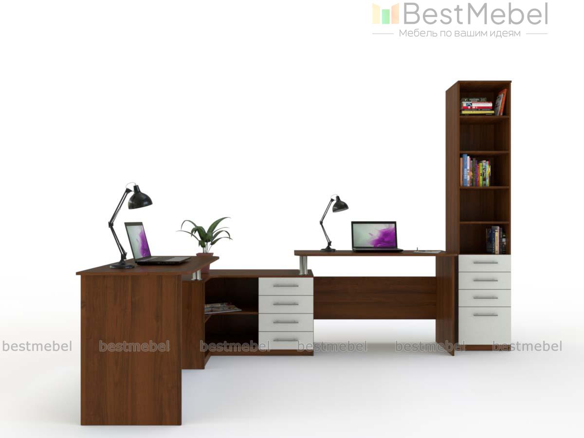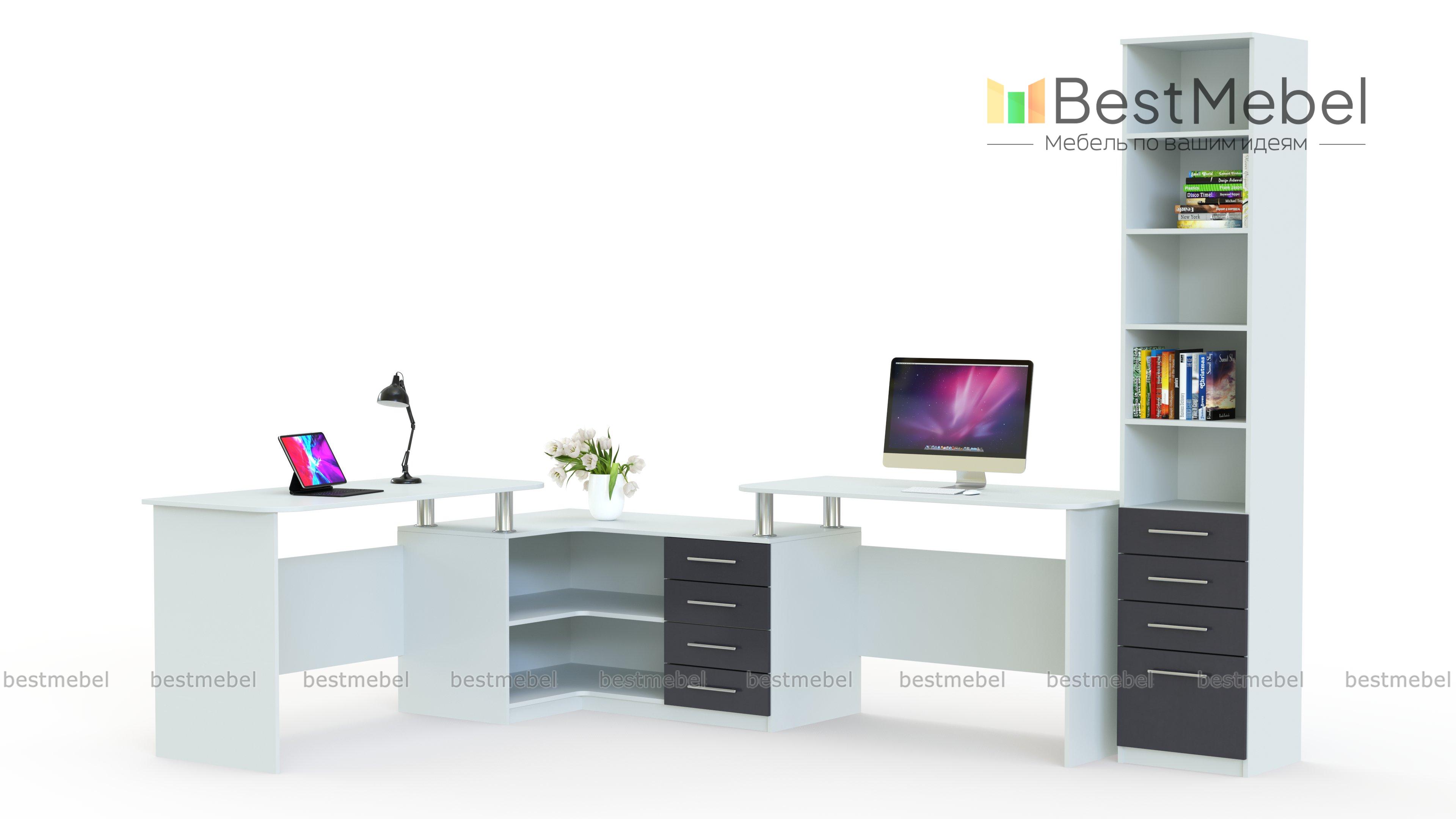 Угловой письменный стол для двоих Канзас 35 BMS станет практичным решением для небольших помещений, помогая по максимуму использовать доступное пространство. Комбинированная модель объединила два прямых письменных стола и угловую тумбу, оборудованную выдвижными ящиками и нишами для хранения необходимых рабочих материалов и канцелярских мелочей. Просторная столешница тумбы позволит разместить под рукой оргтехнику. Купить угловой письменный стол для двоих Канзас 35 BMS приглашаем в наш интернет-магазин по доступной цене.