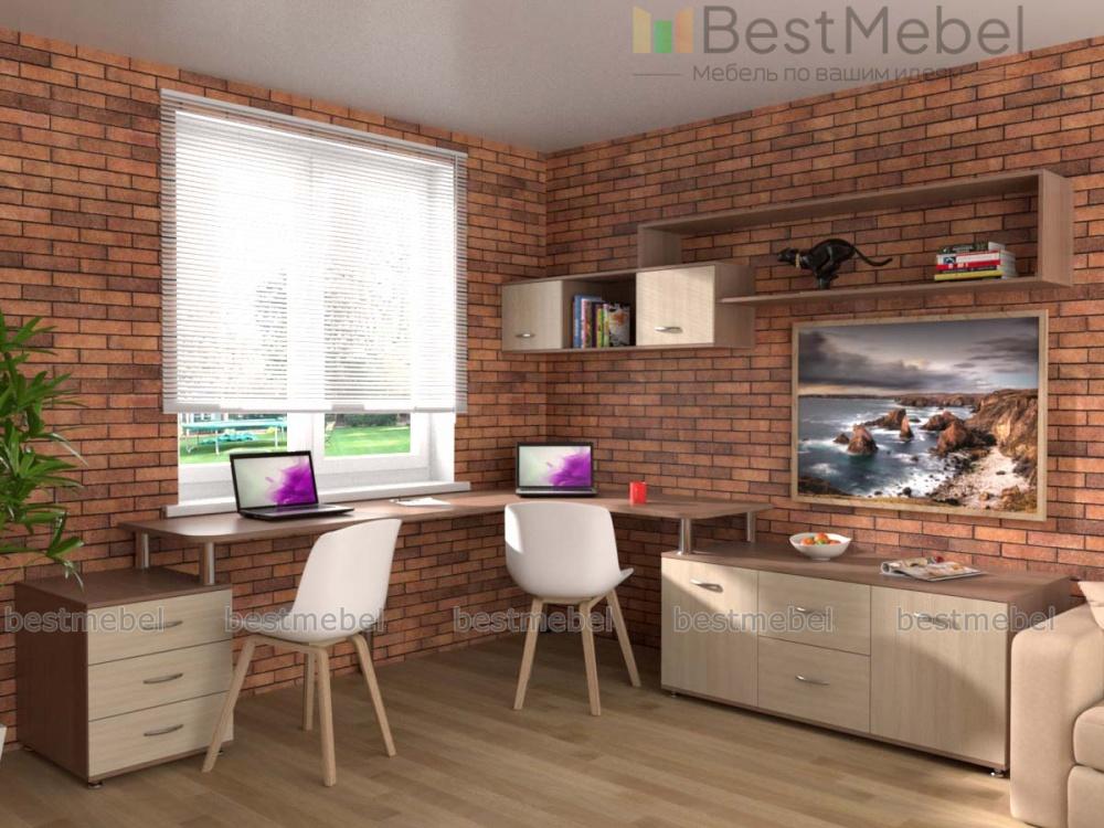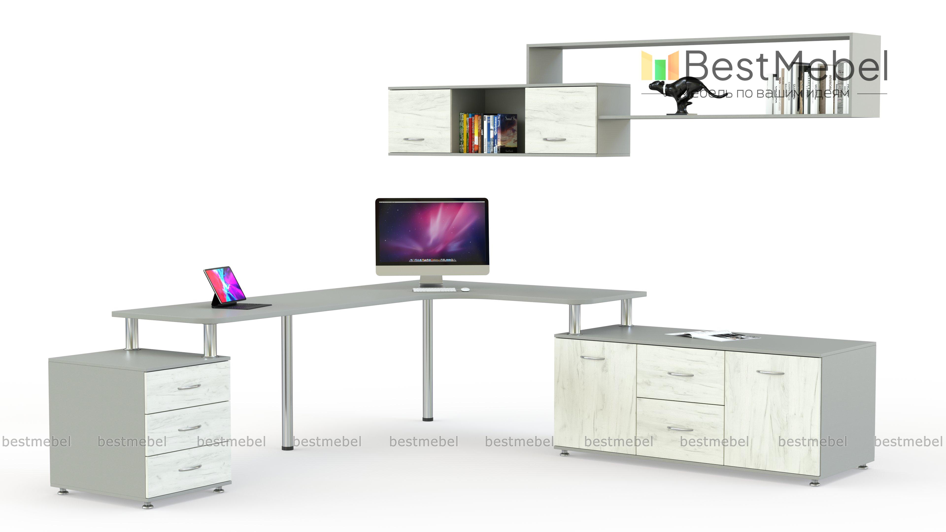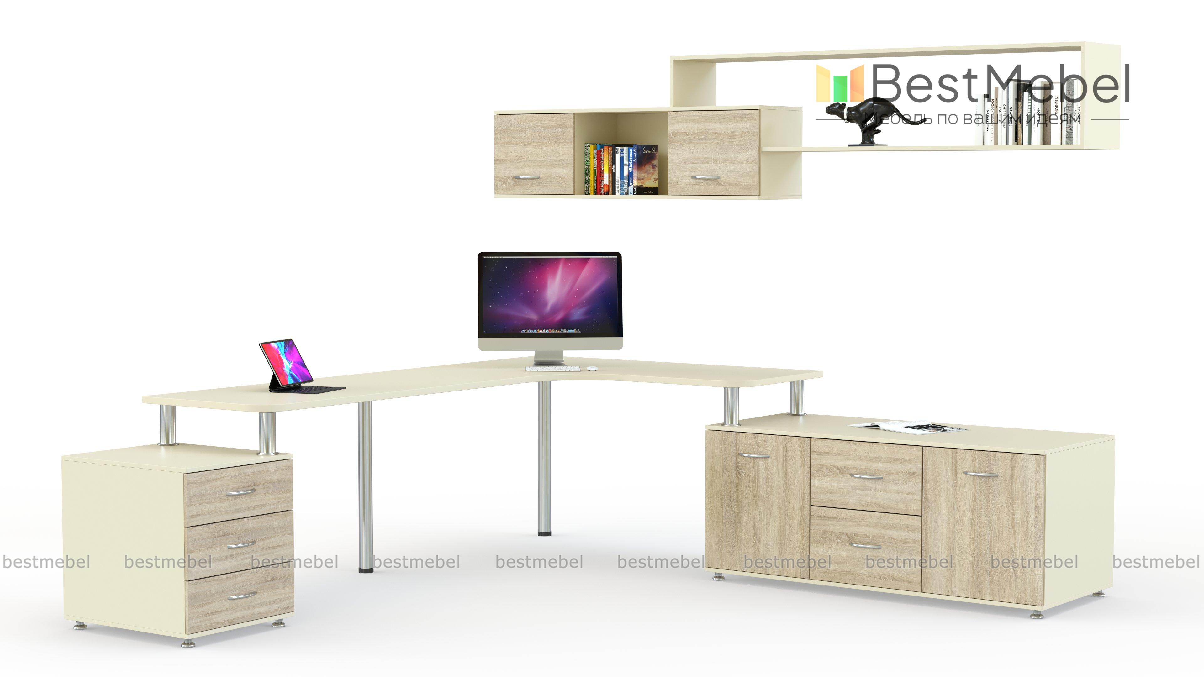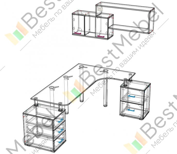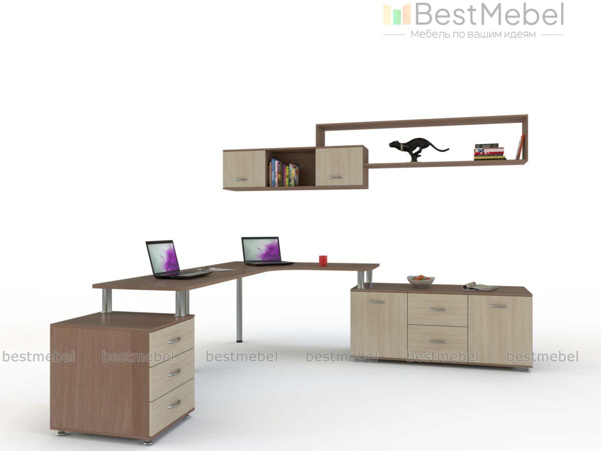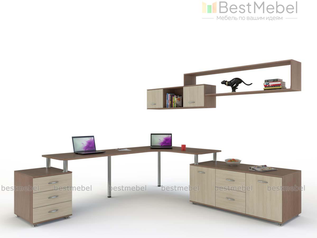 Угловой письменный стол для двоих Колор 57 BMS дополнен продуманной системой хранения и разместит в зоне быстрого доступа все необходимое для полноценной работы или учебы. Скругленная по углам столешница опирается на две тумбы – классическую с выдвижными ящиками и широкую, оборудованную ящиками и распашными отделениями. Навесная книжная полка позволяет эффективно использовать пространство. Купить угловой письменный стол для двоих Колор 57 BMS вы всегда сможете в нашем интернет-магазине.