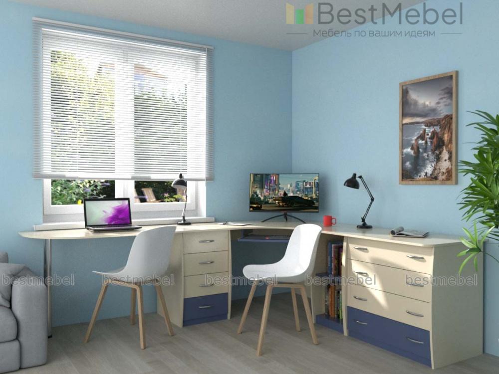 Угловой письменный стол для двоих Нико 88 BMS поможет сэкономить полезную площадь детской и оборудовать комфортную рабочую зону. Практичная форма столешницы позволяет задействовать неиспользуемое пространство, а для хранения учебных материалов и канцелярских мелочей предусмотрены тумба с выдвижными ящиками и комбинированный комод. В оформлении стола сочетаются нейтральные оттенки и цветные вставки. Купить угловой письменный стол для двоих Нико 88 BMS приглашаем в наш интернет-магазин.