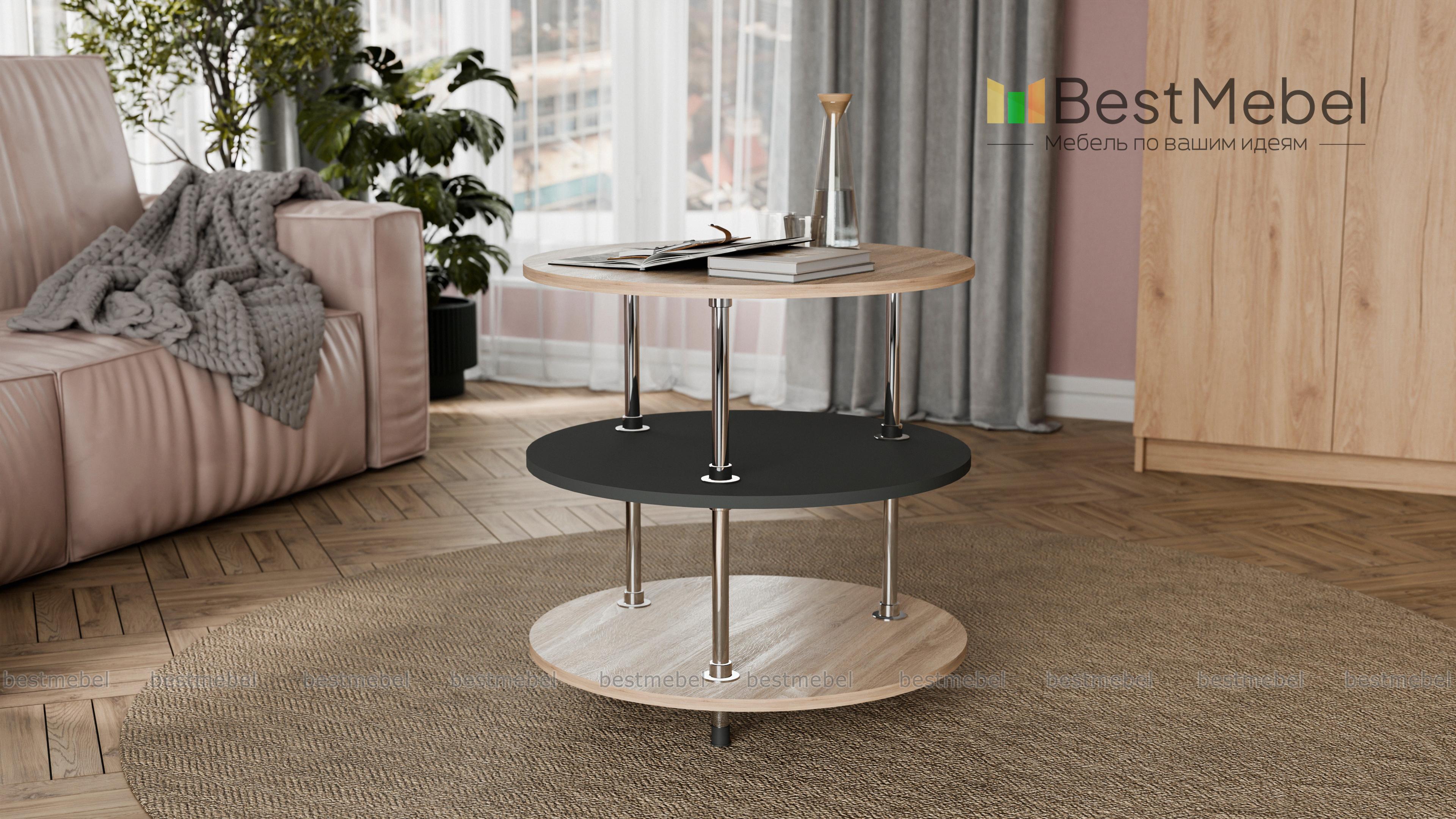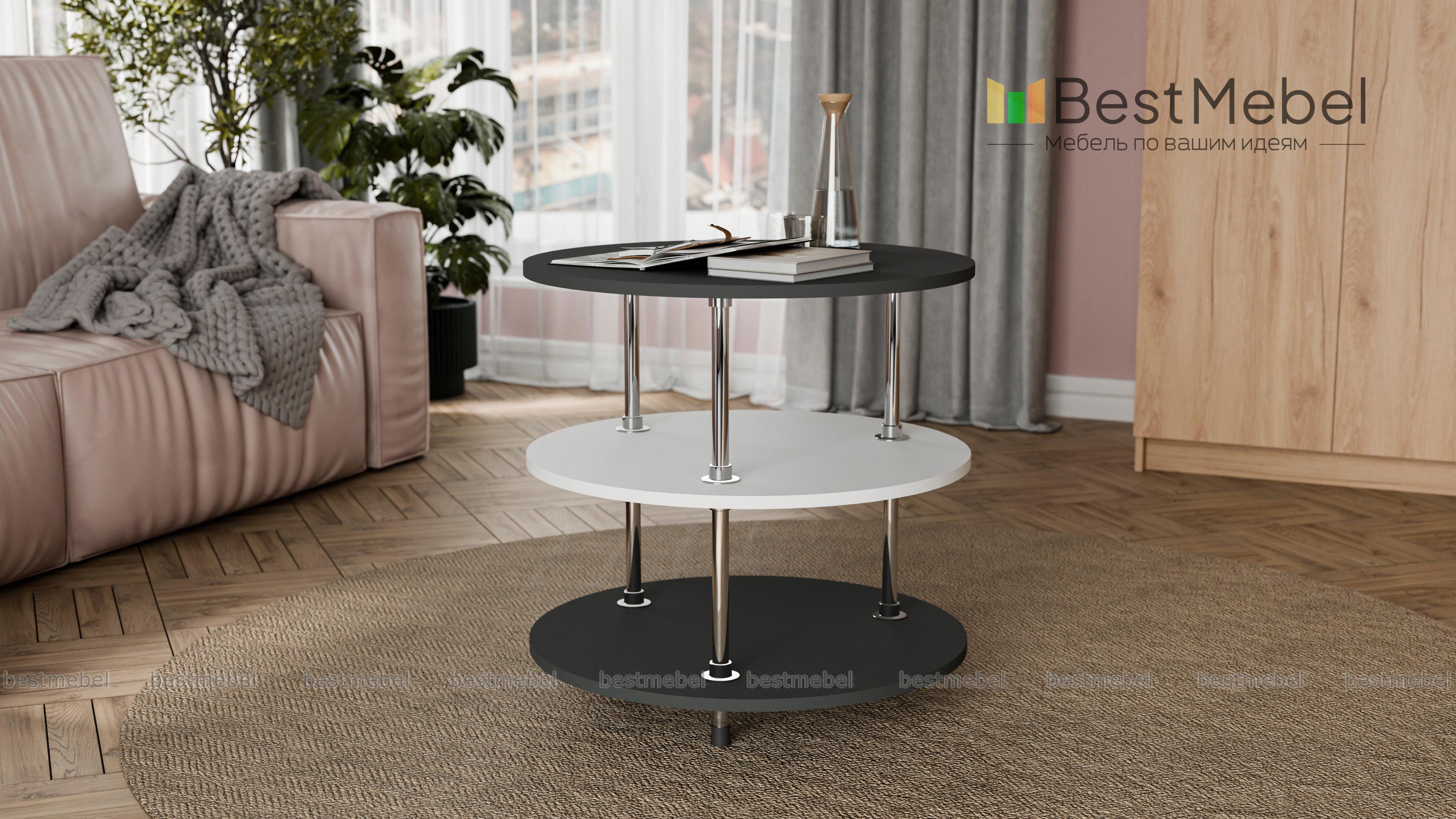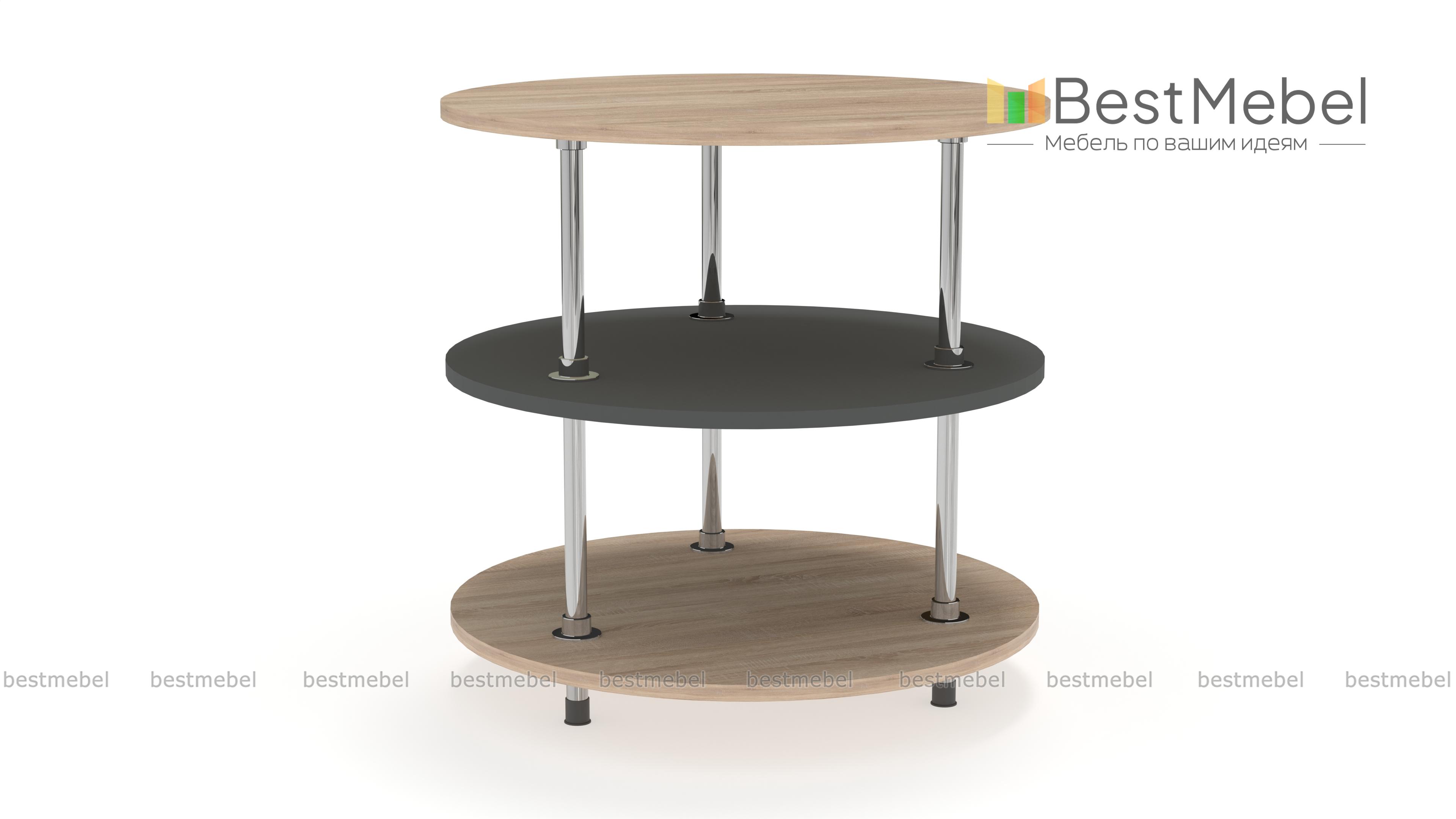 Стол журнальный Виктория СА-1 BMS – это оригинальная разноуровневая модель с тремя столешницами, удобная для сервировки и хранения под рукой важных мелочей. Компактный по размеру, круглый столик занимает в гостиной минимум места, комфортен в эксплуатации и легко вписывается в современный интерьер. Выполненные в контрастных тонах на выбор, столешницы располагаются на устойчивых металлических опорах. Купить стол журнальный Виктория СА-1 BMS вы сможете в нашем интернет-магазине по доступной цене.
