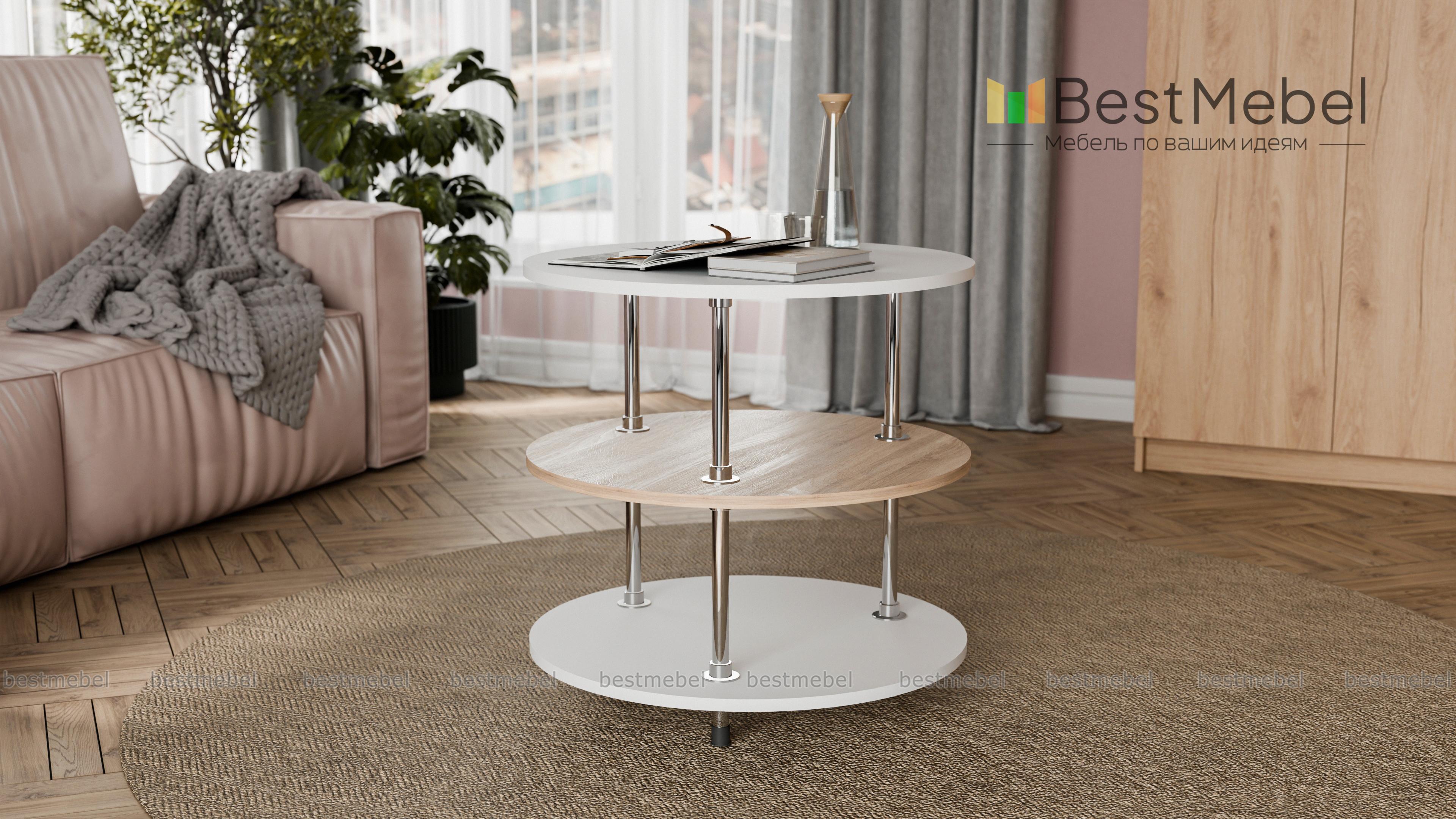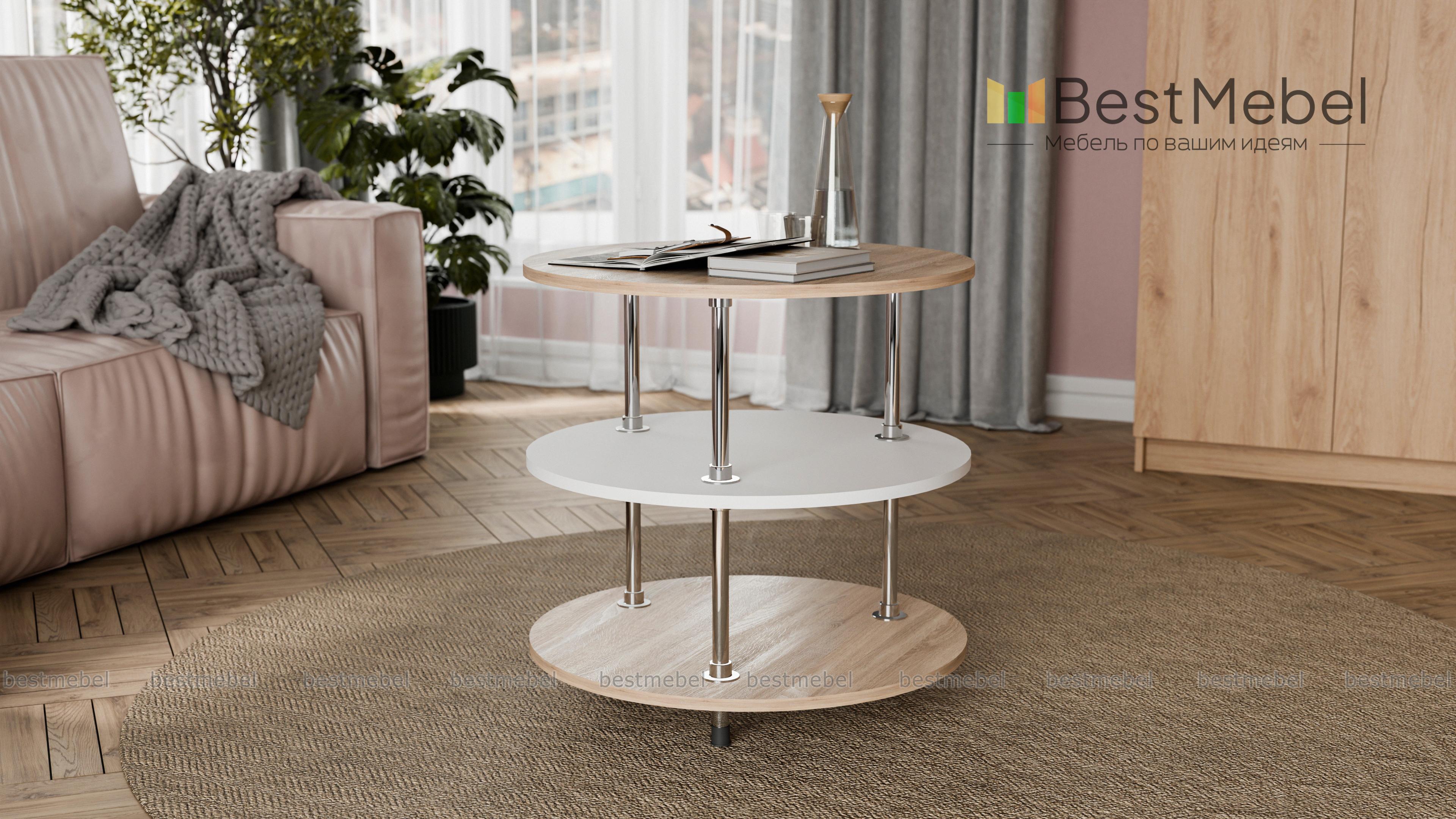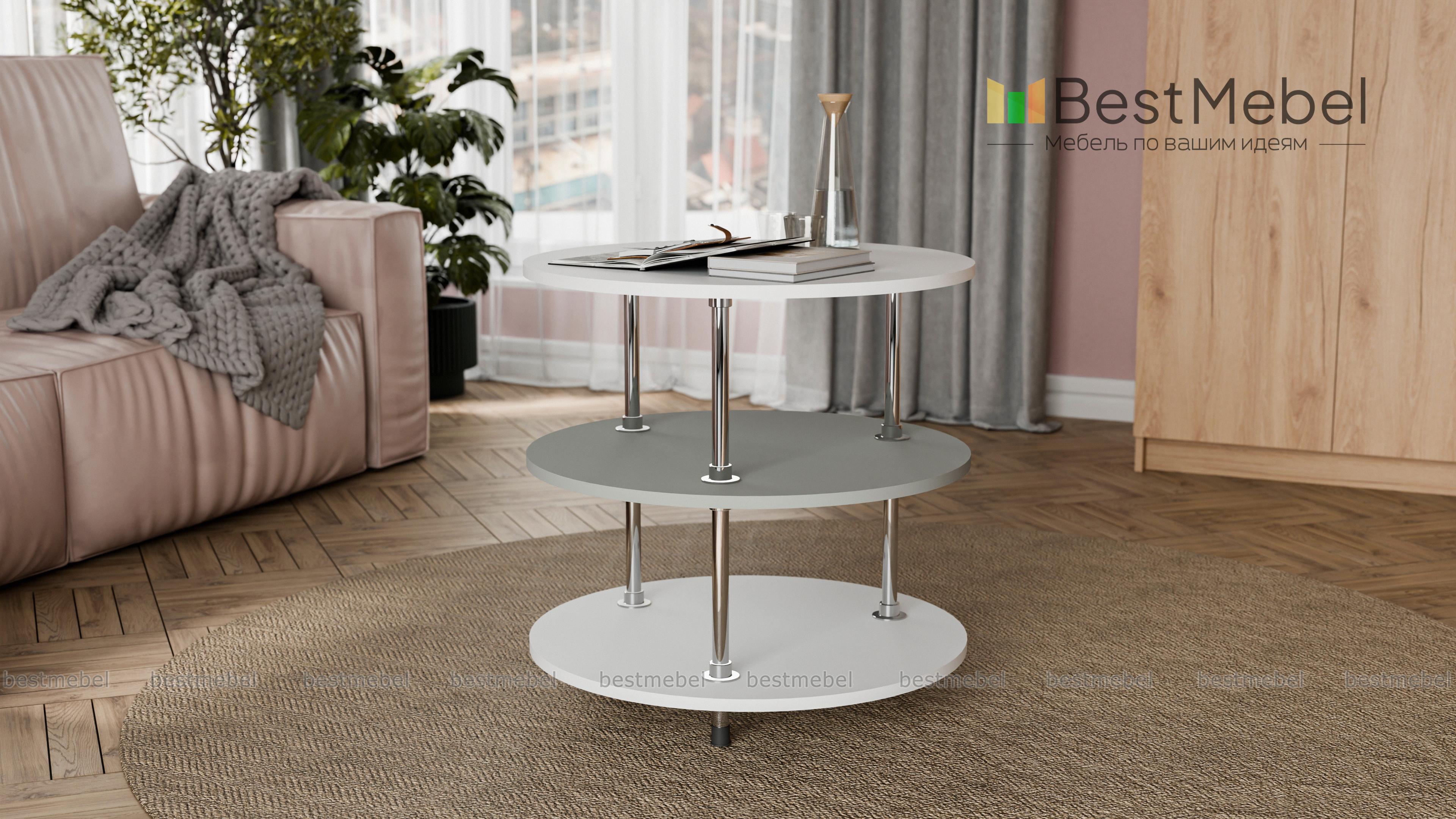 Стол журнальный Виктория СА-1 BMS – это оригинальная разноуровневая модель с тремя столешницами, удобная для сервировки и хранения под рукой важных мелочей. Компактный по размеру, круглый столик занимает в гостиной минимум места, комфортен в эксплуатации и легко вписывается в современный интерьер. Выполненные в контрастных тонах на выбор, столешницы располагаются на устойчивых металлических опорах. Купить стол журнальный Виктория СА-1 BMS вы сможете в нашем интернет-магазине по доступной цене.