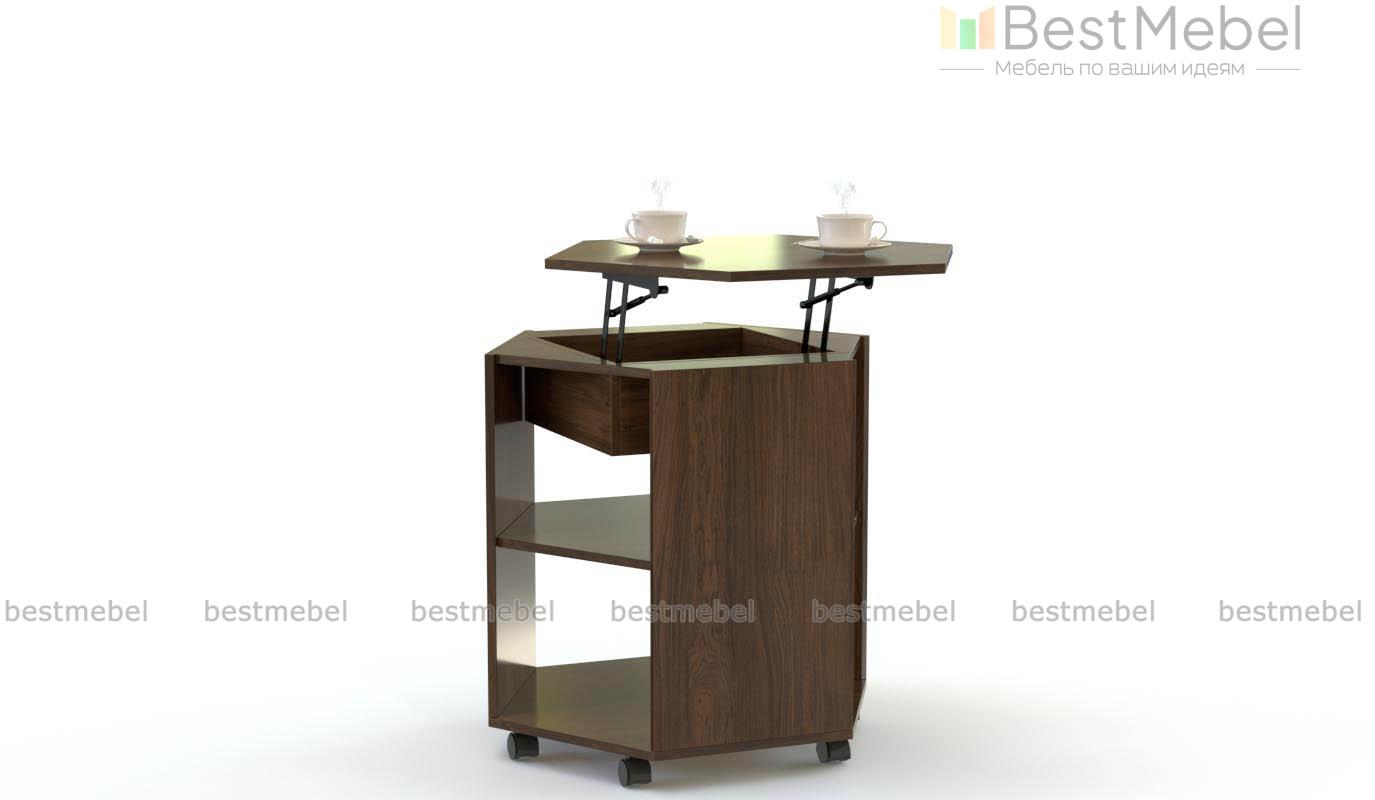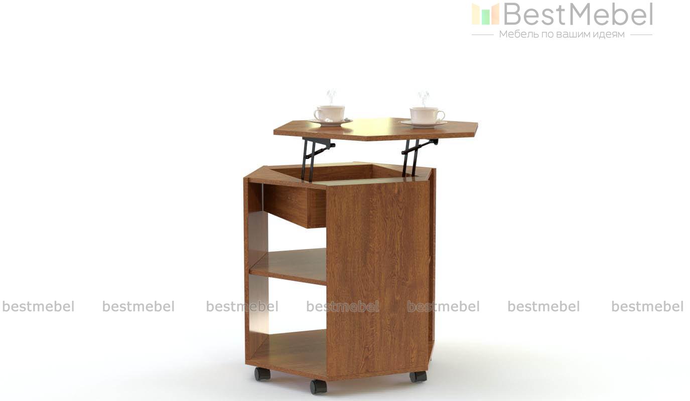 Стол журнальный Вивьен 4 BMS, выполненный в форме гексагона, станет элементом дизайна современной гостиной. Компактный в сложенном виде столик оборудован открытой полкой для хранения книг, журналов и важных мелочей, а при помощи столешницы с подъемным механизмом увеличивается в высоту. Благодаря колесикам стол легко перемещается и может располагаться в любой удобной части квартиры. Купить стол журнальный Вивьен 4 BMS и сделать интерьер функциональнее вам поможет наш интернет-магазин.