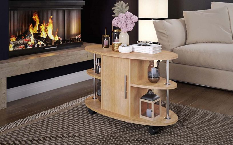 Стол журнальный Ж-02 BMS – модель в современном стиле. Две овальные столешницы дополняются высокой тумбой с распашной дверкой и полками по бокам. Столик можно поставить к дивану во время чаепития или отодвинуть в сторону при необходимости с помощью колесиков. Компактные параметры позволяют практично использовать его каждый день, не занимая много места. Купить стол журнальный Ж-02 BMS можно на нашем сайте по низкой цене.