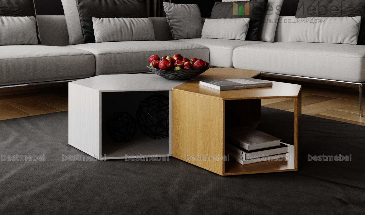 Журнальный стол Гекса 3 BMS по форме напоминает соты и состоит из трех одинаковых модулей-шестигранников. Эффектную геометрию модели подчеркивает цветовое решение – теплые древесные оттенки и платиновый глянец. Оборудованные просторными внутренними отделениями с перегородками, модули смогут разместить книги, журналы и необходимые под рукой мелочи, а столешницы удобны для сервировки. Купить журнальный стол Гекса 3 BMS и дополнить интерьер гостиной стильным акцентом вам поможет наш интернет-магазин.