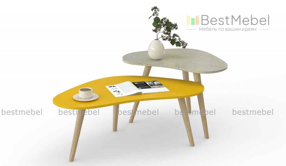 Журнальный стол Лава 8 BMS состоит из двух столиков разной высоты, которые отлично смотрятся по отдельности и в комплекте, дополняя друг друга. Столешницы обтекаемой формы удобны в интерьере небольшой квартиры, смягчая острые углы, а высокие скошенные ножки в стиле сканди добавляют легкости. Для создания уютной атмосферы - светлые древесные тона с теплым цветовым акцентом. Купить журнальный стол Лава 8 BMS вы сможете в нашем интернет-магазине, подобрав цветовую гамму.