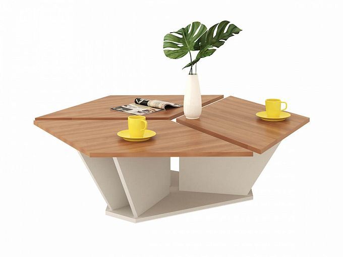 Журнальный столик Агата BMS дополнит интерьер гостиной современной деталью. Необычный и функциональный стол, столешница которого разделена на три секции, а опоры создают открытые полки для мелочей и декоративных предметов. Столешница удобна для размещения напитков, журналов, необходимых под рукой книг. Изготовленный из износостойких и качественных материалов, стол прослужит Вам долгое время. Купить журнальный столик Агата BMS по привлекательной цене Вы сможете в нашем интернет-магазине.