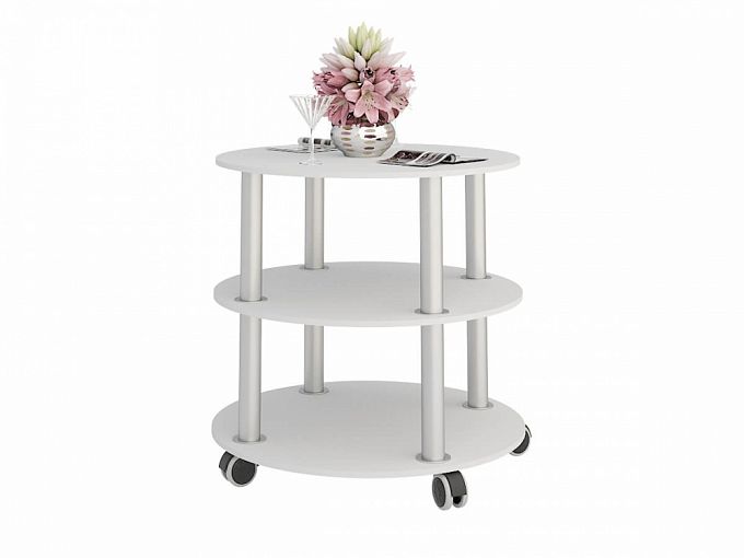 Журнальный столик Baker BMS ‒ оригинальное решение для небольших помещений. Три круглые столешницы, соединенные между собой, организуют столешницу и 2 полочки для журналов и книг. Округлая форма позволяет не бояться случайных ударов об острые углы, что важно, если в доме есть маленькие дети. Универсальный белый цвет базовой модели позволит разместить столик в любом современном или классическом интерьере. Купить недорого Журнальный столик Baker BMS Вы можете в нашем интернет-магазине.