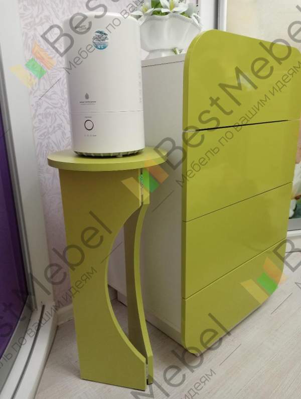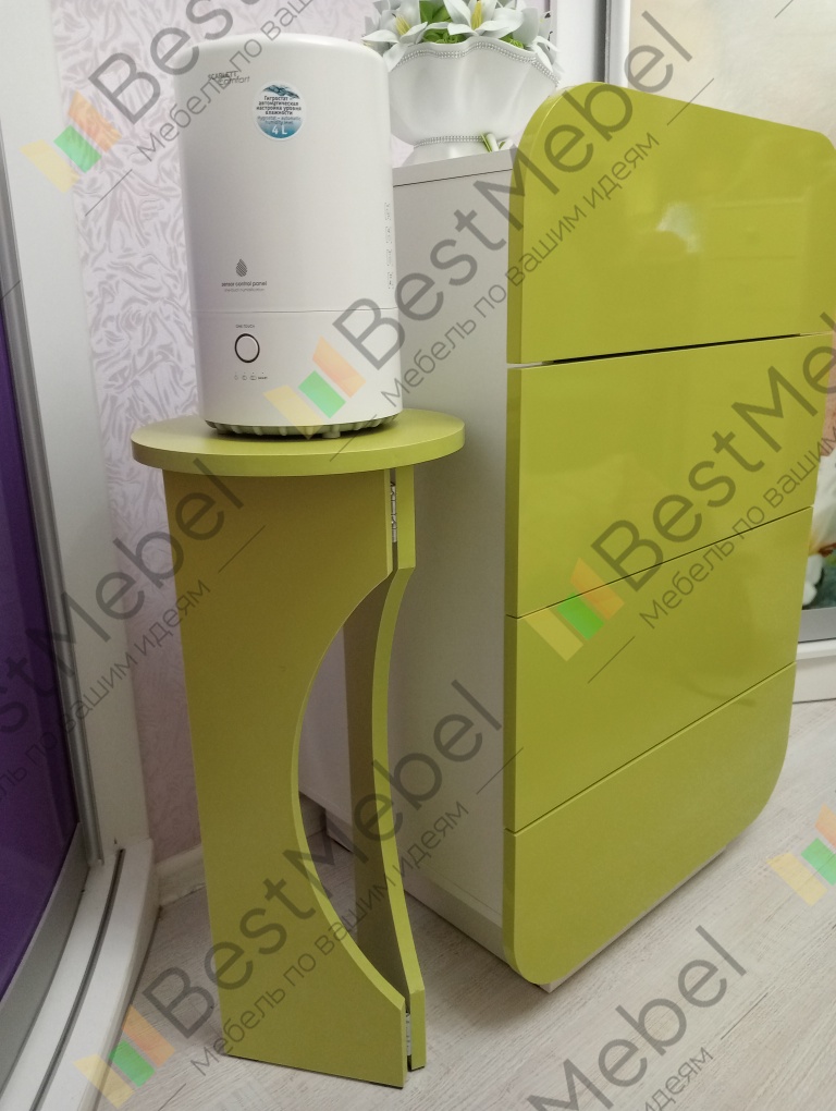Заказала столик в салатовом цвете, т.к вся мебель была заказана салатовая. Очень хороший столик. Вместительный. Покупкой очень довольна.