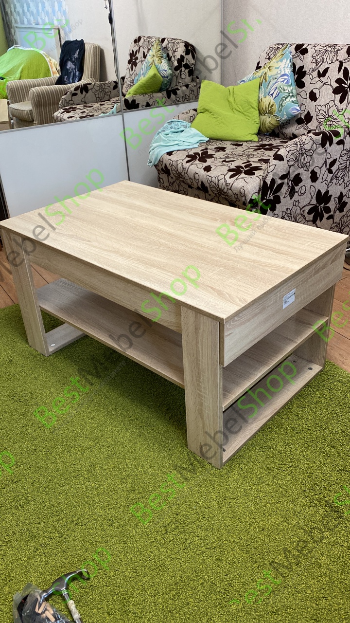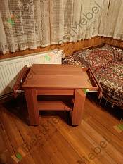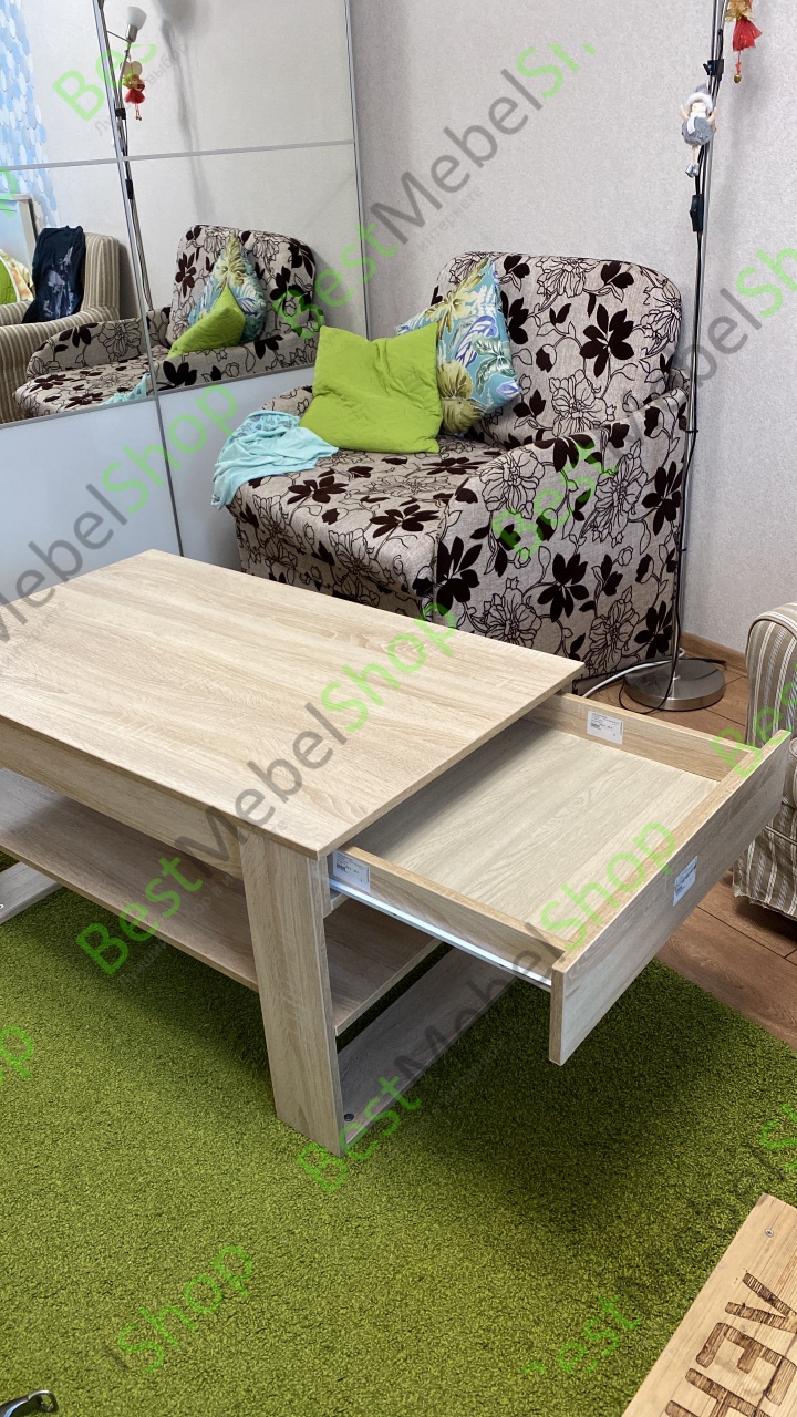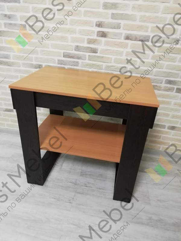Отличный столик с выдвижными ящиками, очень удобная высота (650мм) хоть из положения лёжа (смотреть тв), хоть сидя(ноги под столик можно поставить).