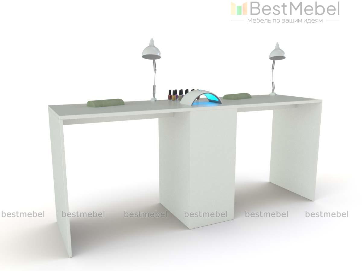 Двойной маникюрный стол Лилит BMS предназначен для одновременной работы двух мастеров и обеспечивает значительную экономию пространства. Модель оборудована разделительной тумбой с четырьмя выдвижными ящиками и индивидуальными ящиками для хранения под рукой необходимых материалов и инструментов. Просторная составная столешница прямоугольной формы опирается на широкие устойчивые боковины. Купить двойной маникюрный стол Лилит BMS для меблировки современного салона вы сможете в нашем интернет-магазине.
