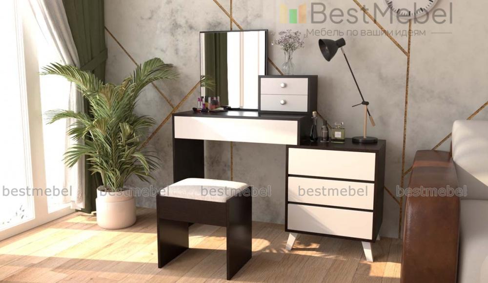 Туалетный стол Блайн 3 BMS органично впишется в современный спальный интерьер и сделает уход за собой комфортным. Комбинированная модель объединила столик с широким выдвижным ящиком, надстройку с парой ящичков для мелочей, большое навесное зеркало, тумбу для хранения аксессуаров и банкетку. Строгую геометрию линий подчеркнет контрастная черно-белая гамма. Купить туалетный стол Блайн 3 BMS по выгодной цене вы всегда сможете в нашем интернет-магазине.