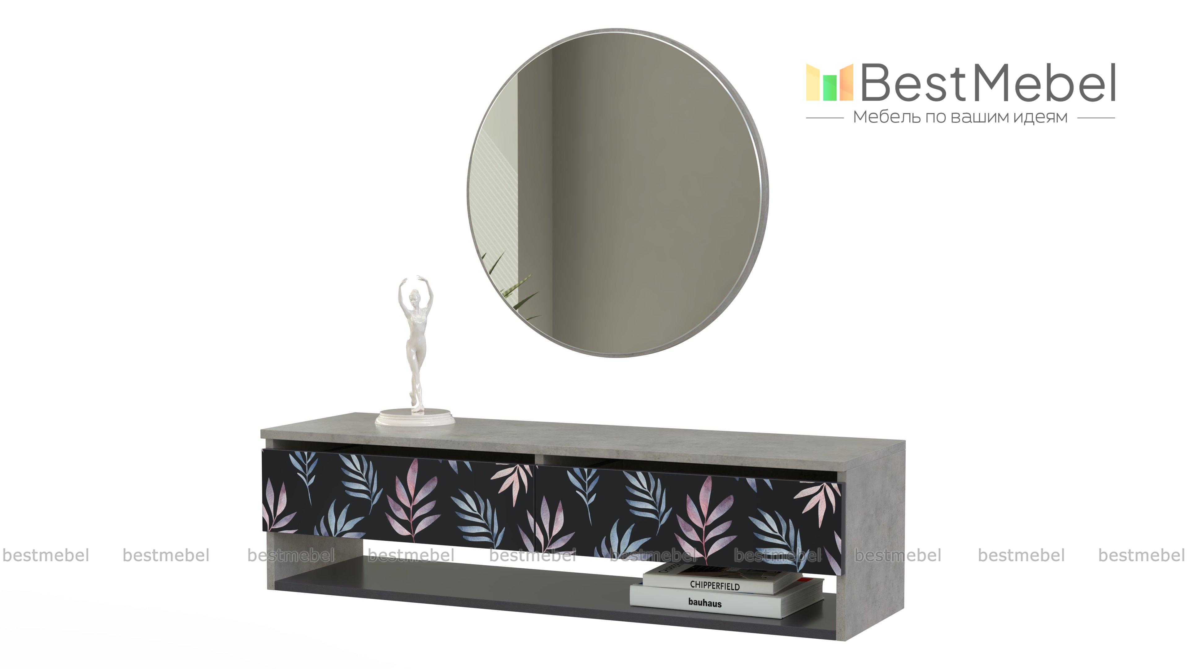 Туалетный столик Эдит 13 BMS – легкий и невероятно стильный, завершит образ современной спальни. Широкая подвесная тумба с двумя выдвижными ящиками и открытой полкой для хранения уходовой и декоративной косметики, любимого парфюма и аксессуаров украшена по фасаду неброским растительным принтом. Большое круглое зеркало располагается над столешницей для удобного нанесения макияжа. Купить туалетный столик Эдит 13 BMS по доступной цене вы сможете на сайте нашего интернет-магазина.