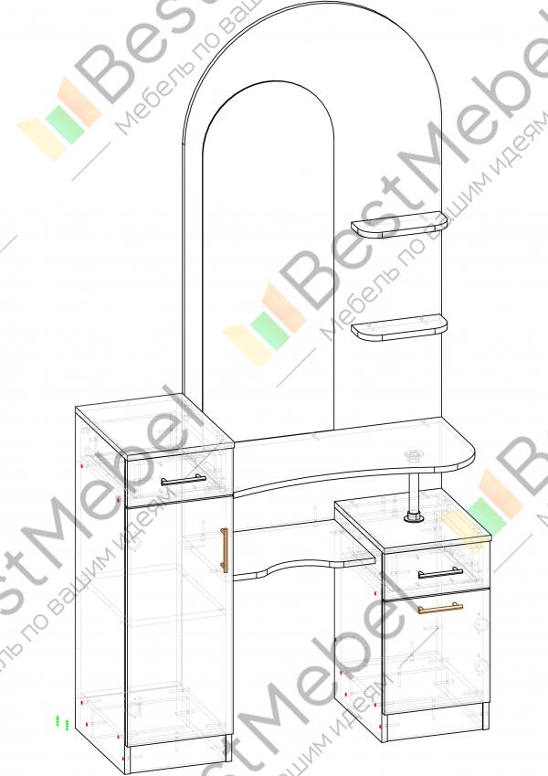 Туалетный столик Камея 4 BMS отличается простым и элегантным современным дизайном. Дополненный удобной системой хранения, столик с легкостью разместит все необходимые уходовые средства, аксессуары и украшения. Модель оборудована эргономичной столешницей на хромированной опоре, двумя тумбами с выдвижными ящиками и распашным отделением – высокой и низкой, а также изящно скругленной панелью с зеркалом и открытыми полочками. Купить туалетный столик Камея 4 BMS приглашаем в наш интернет-магазин, подобрав цветовое решение.