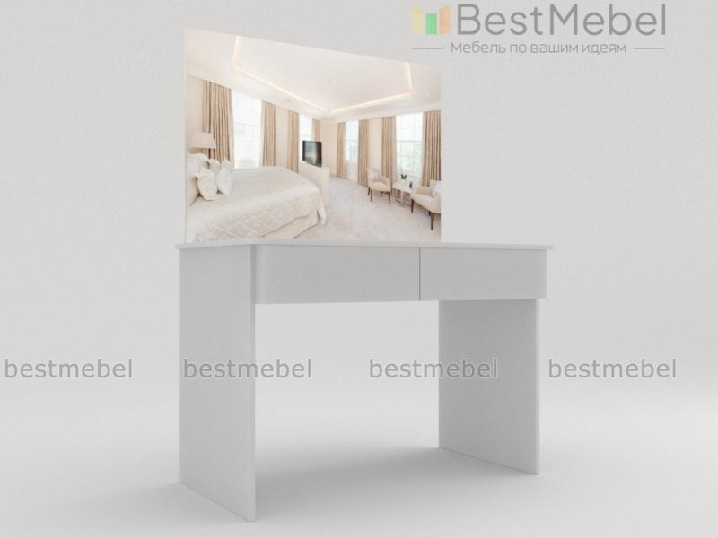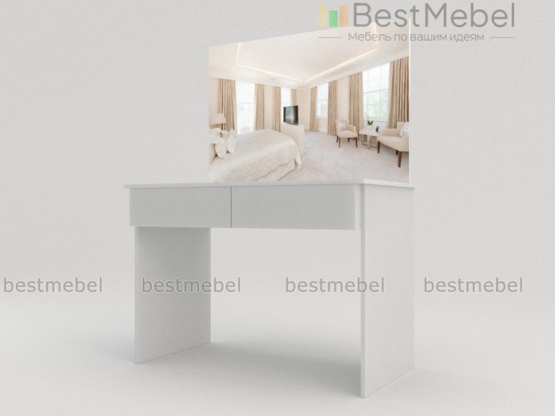 Стильный столик, белоснежные глянцевые поверхности которого подчеркивают элегантную простоту дизайна. При удлиненной столешнице он имеет небольшую стандартную ширину и при размещении вдоль стены не займет много места. Наличие двух просторных выдвижных ящиков позволит содержать в порядке косметические средства и аксессуары, а причесываться и делать макияж перед большим навесным зеркалом будет настоящим удовольствием.