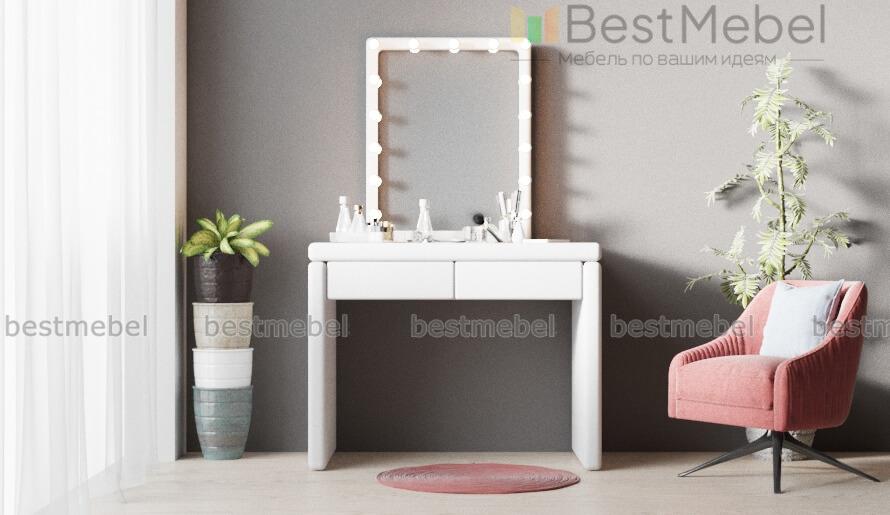 Туалетный столик Хлоя 17 BMS станет не только практичным дополнением меблировки, но и элементом дизайна. Скругленные линии и мягкая обивка в белой экокоже придают модели футуристичный вид и эффектно смотрятся в ультрасовременных интерьерах. Макияжный столик отличается просторной рабочей поверхностью и оборудован двумя выдвижными ящиками для мелочей. По периметру закрепленного на столешнице вертикального зеркала располагаются светодиодные лампочки. Купить туалетный столик Хлоя 17 BMS приглашаем в наш интернет-магазин по лучшей цене.